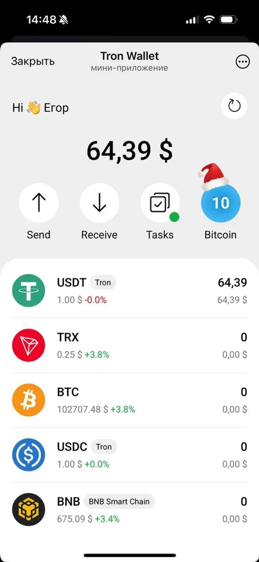 Tron Wallet — официальный кошелёк для работы с TRX и другими токенами сети Tron внутри Telegram. Позволяет хранить средства, быстро отправлять и принимать токены через контакты мессенджера, а также отслеживать баланс и историю операций в режиме реального времени.