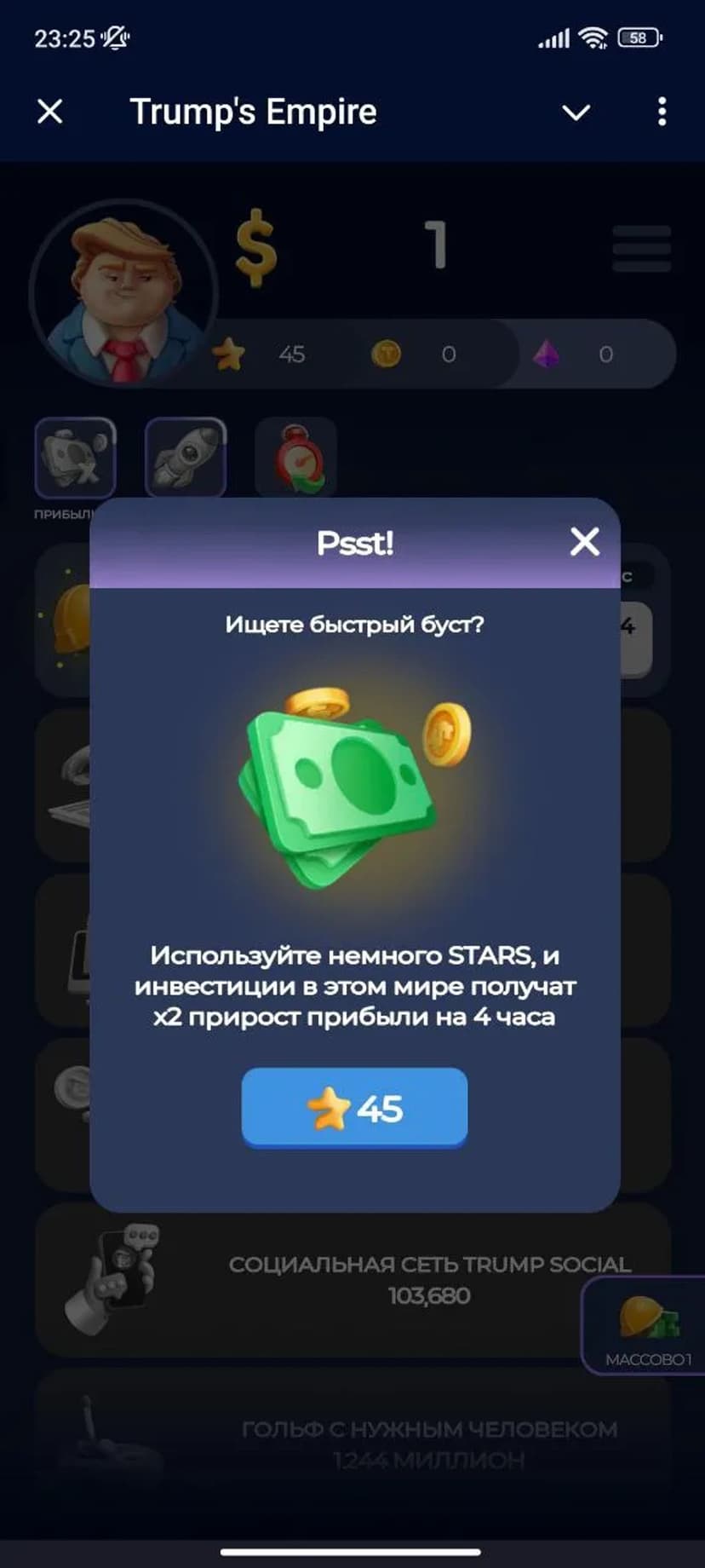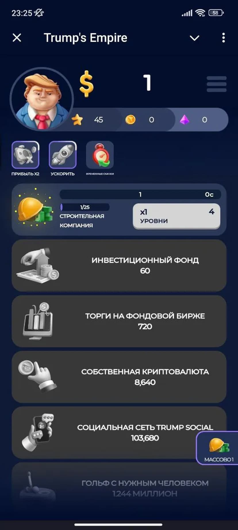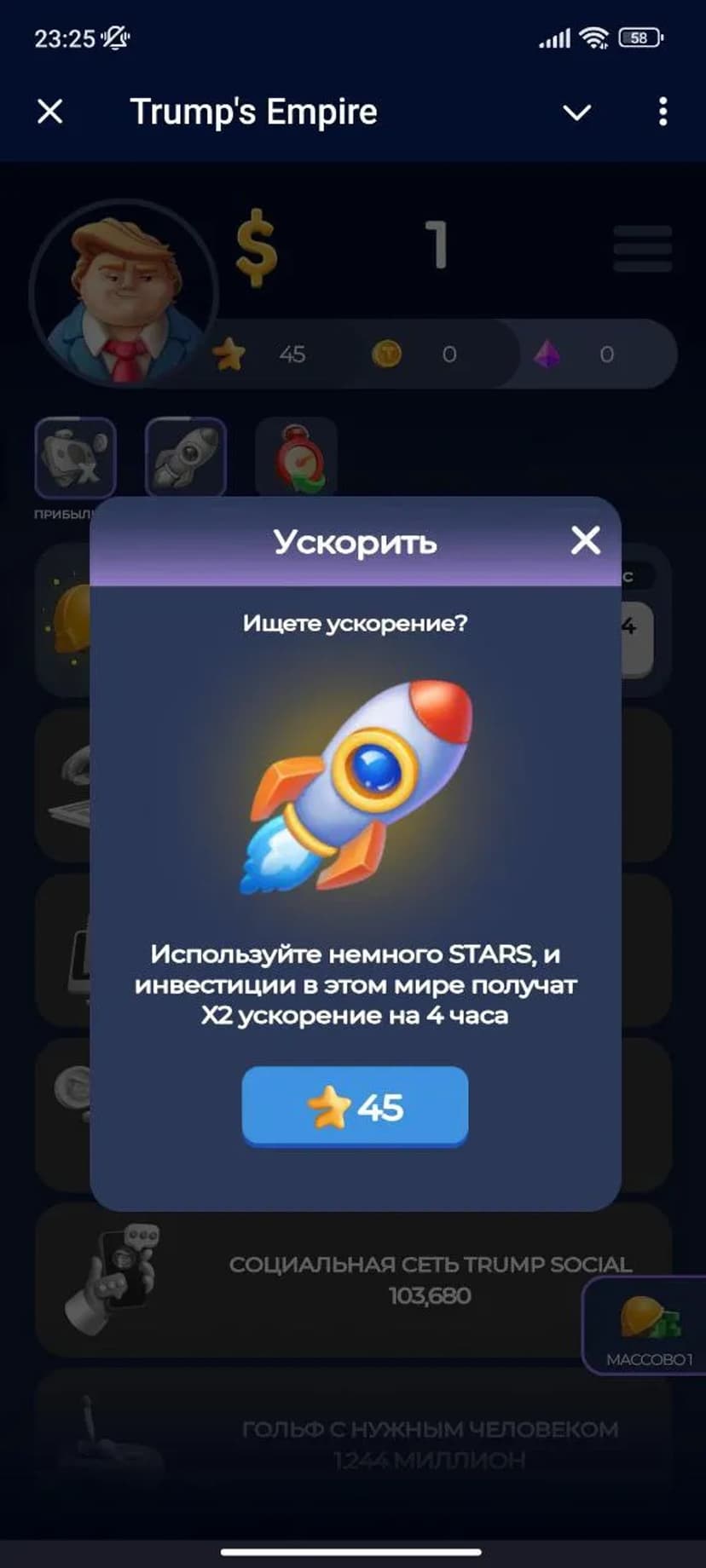 *Нажимая "Открыть в Telegram", вы перейдете к приложению Trump’s Empire в мессенджере Telegram