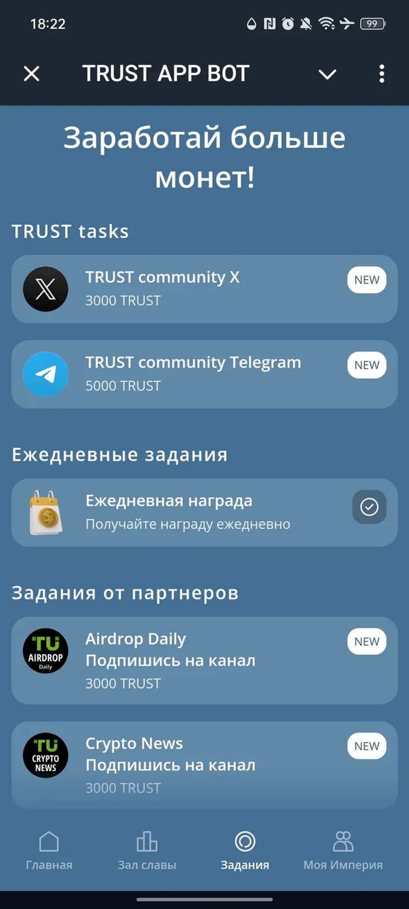 *Нажимая "Открыть в Telegram", вы перейдете к приложению TRUST APP BOT в мессенджере Telegram