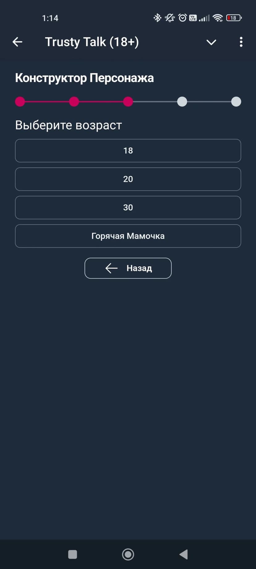 - Анонимность пользователей и обязательное подтверждение возраста (18+).