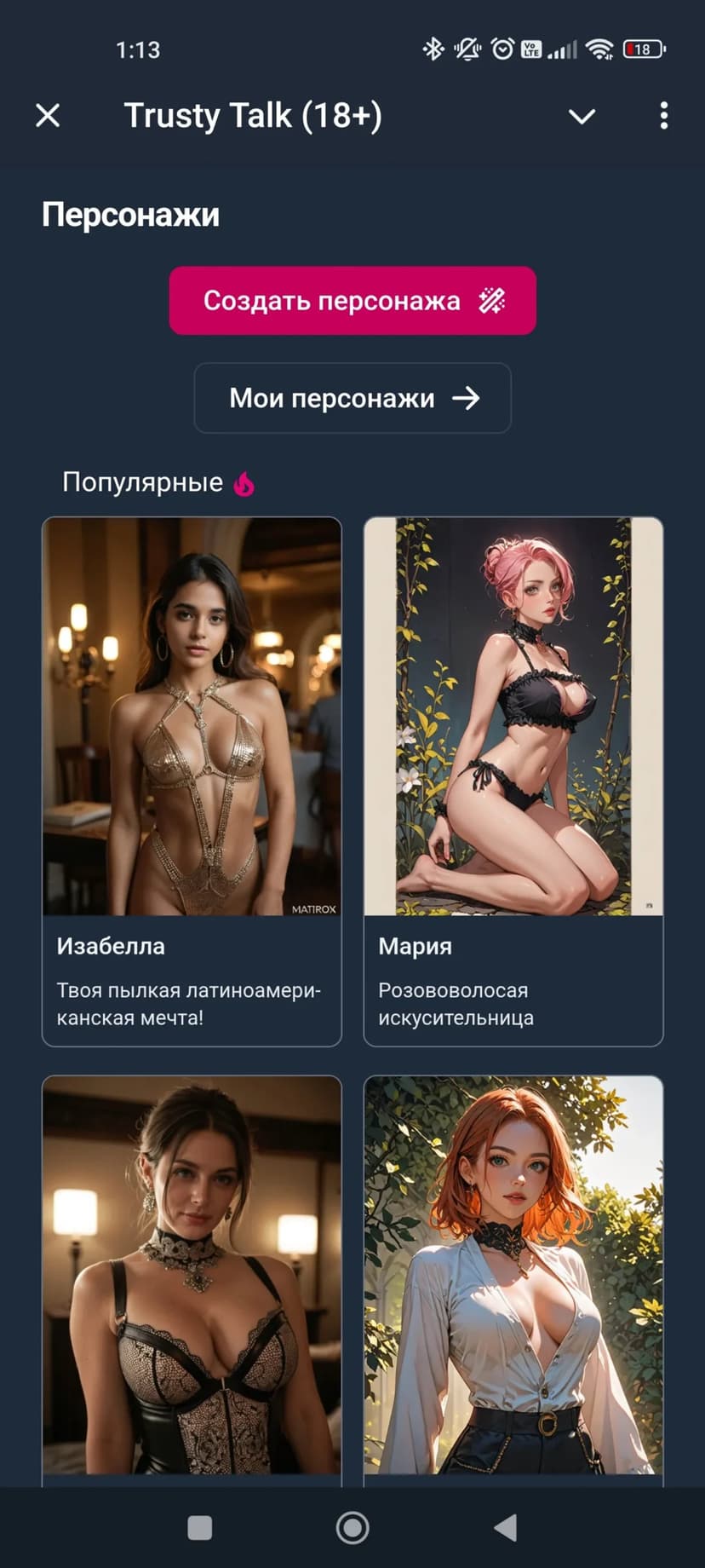 Чаты с виртуальными AI‑девушками: настройка внешности и характера, текст и изображения (18+)