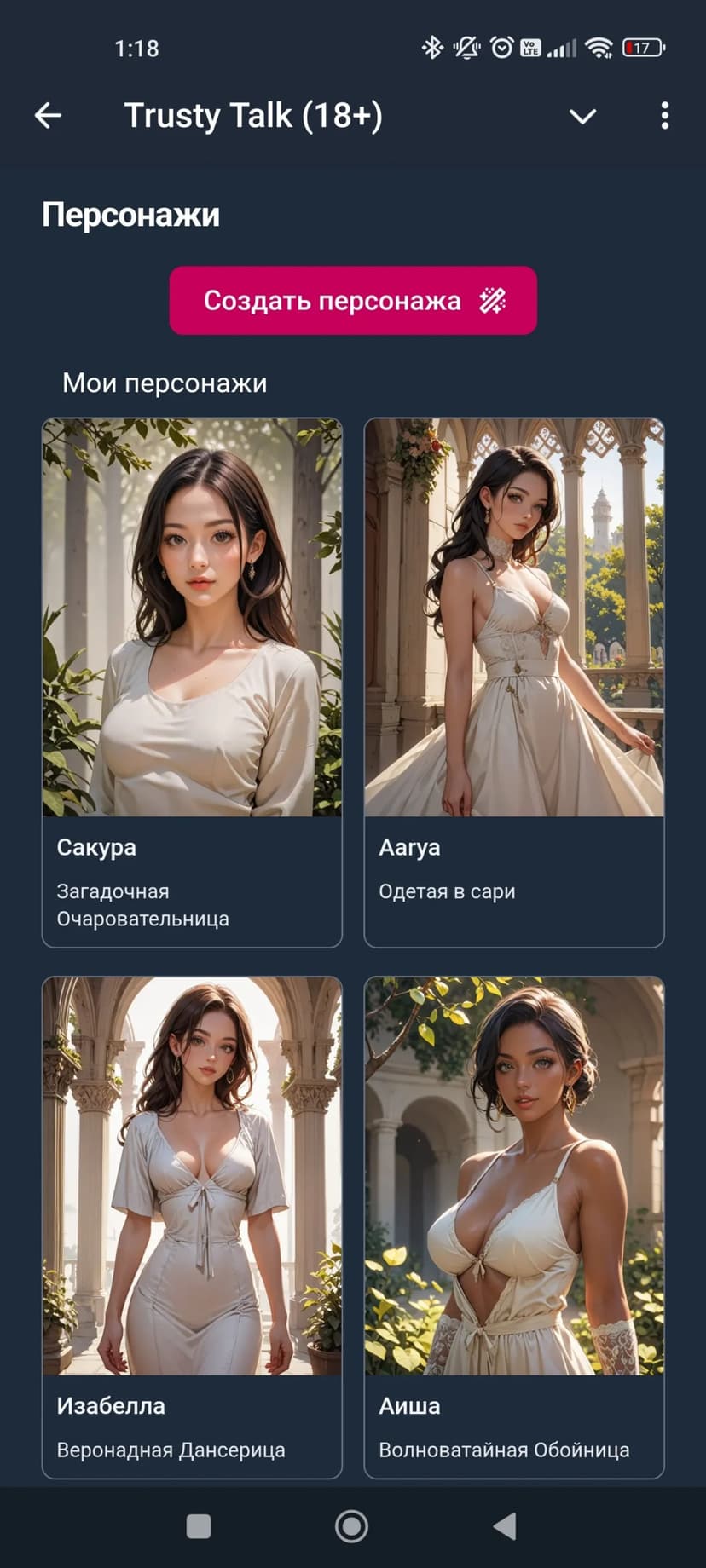 - Настройка внешности и характера каждой AI‑компаньонки.
