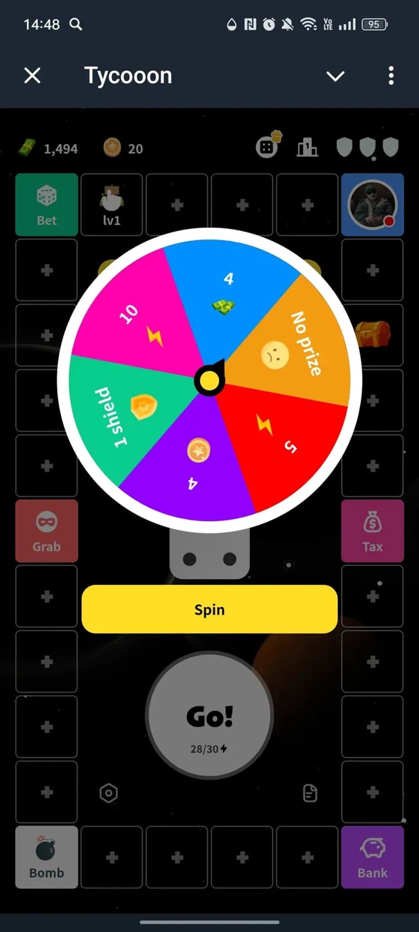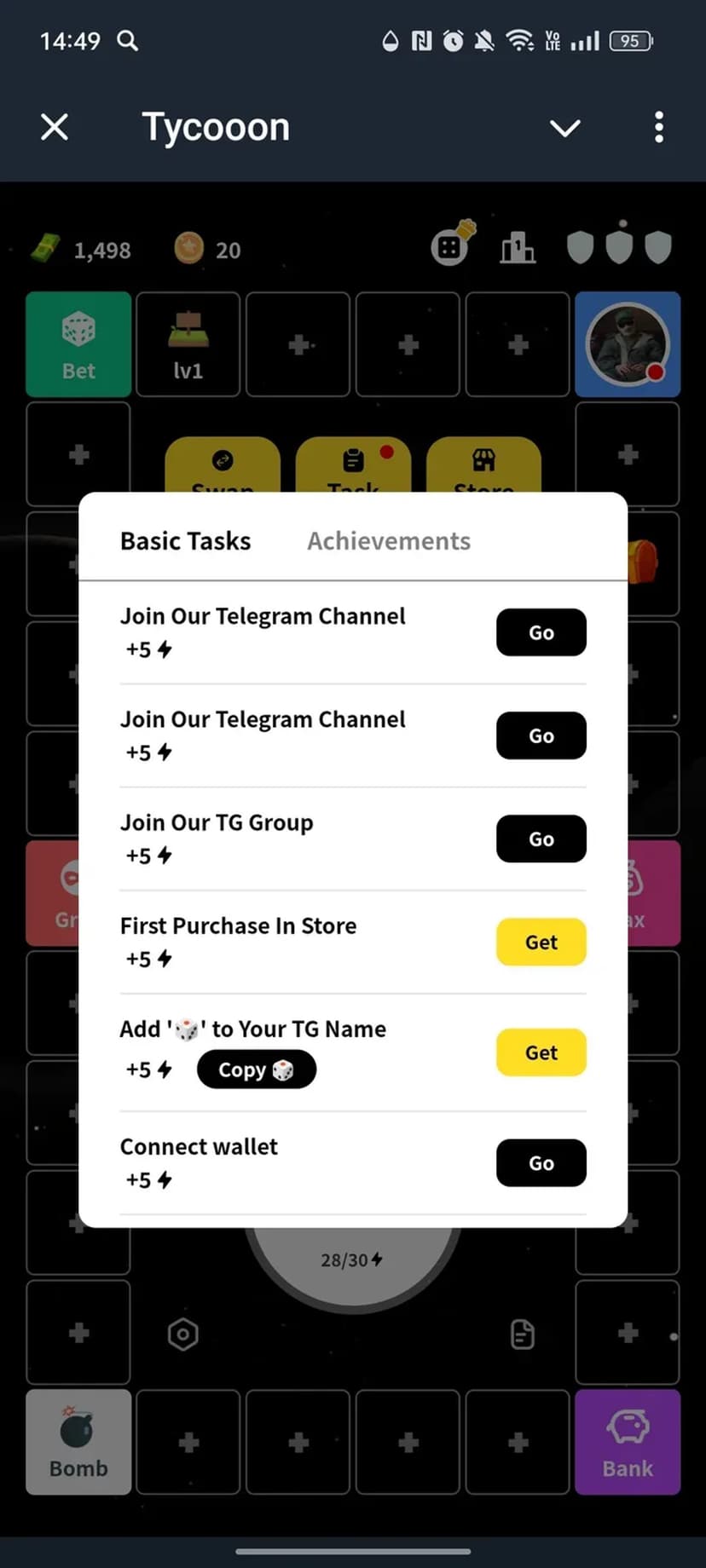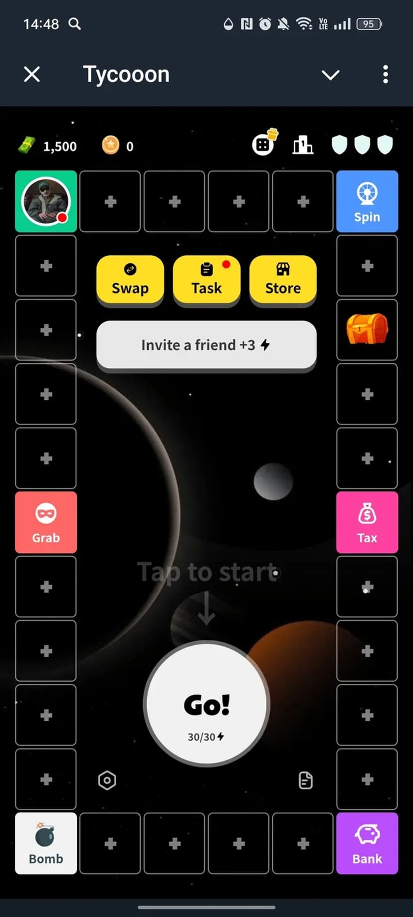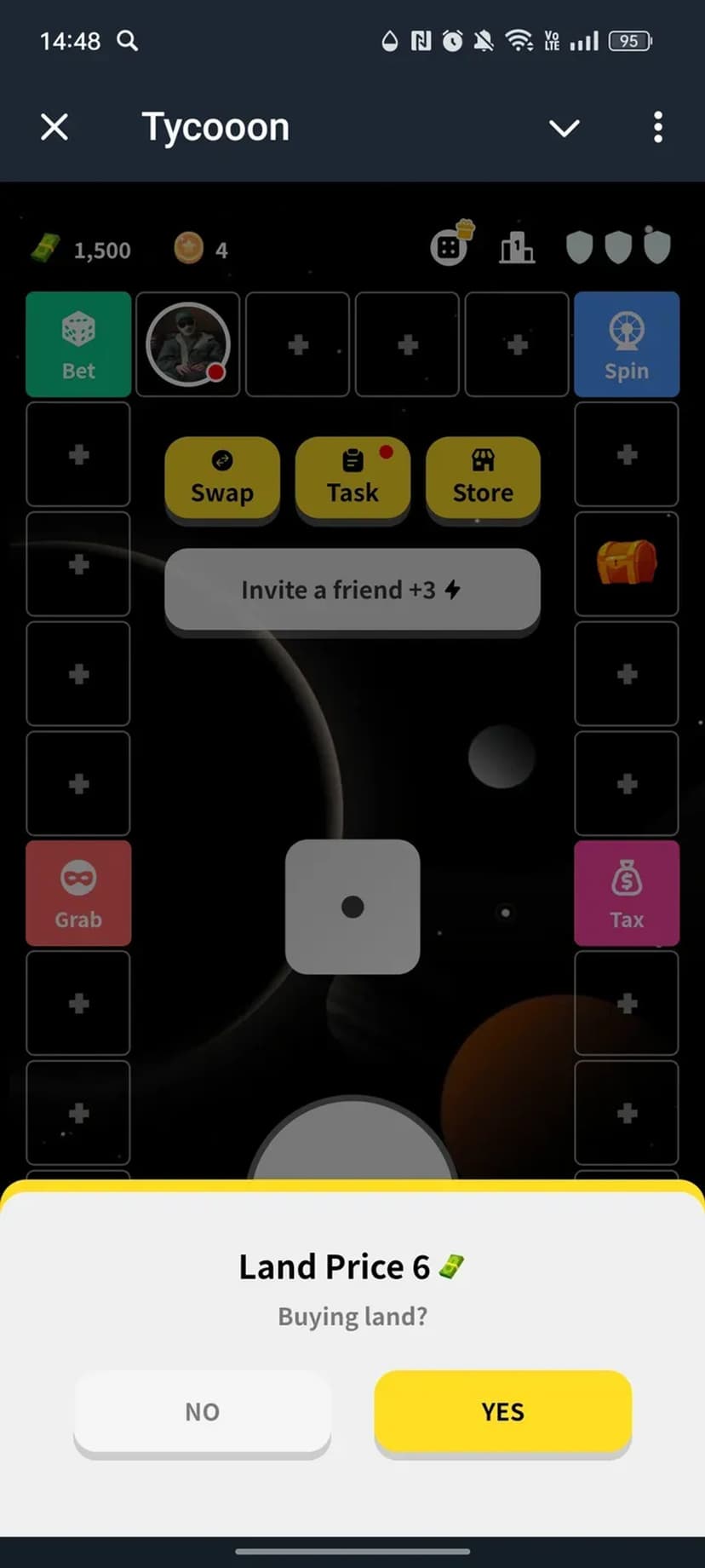 Tycooon — быстрая экономическая настольная мини-игра, где игрок развивает виртуальный бизнес: передвигается фишкой по полю, покупает и улучшает объекты, чтобы получать прибыль и увеличивать капитал.
