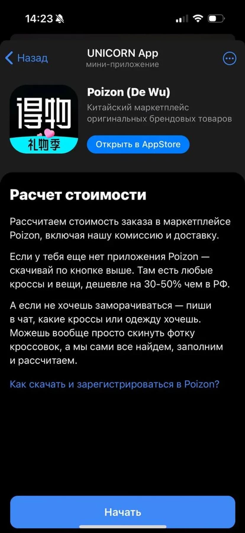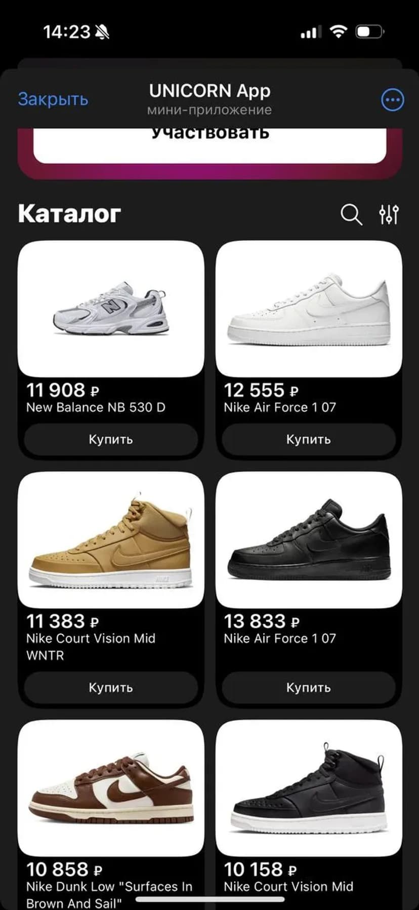 *Нажимая "Открыть в Telegram", вы перейдете к приложению UNICORN: обувь, одежда, аксессуары в мессенджере Telegram
