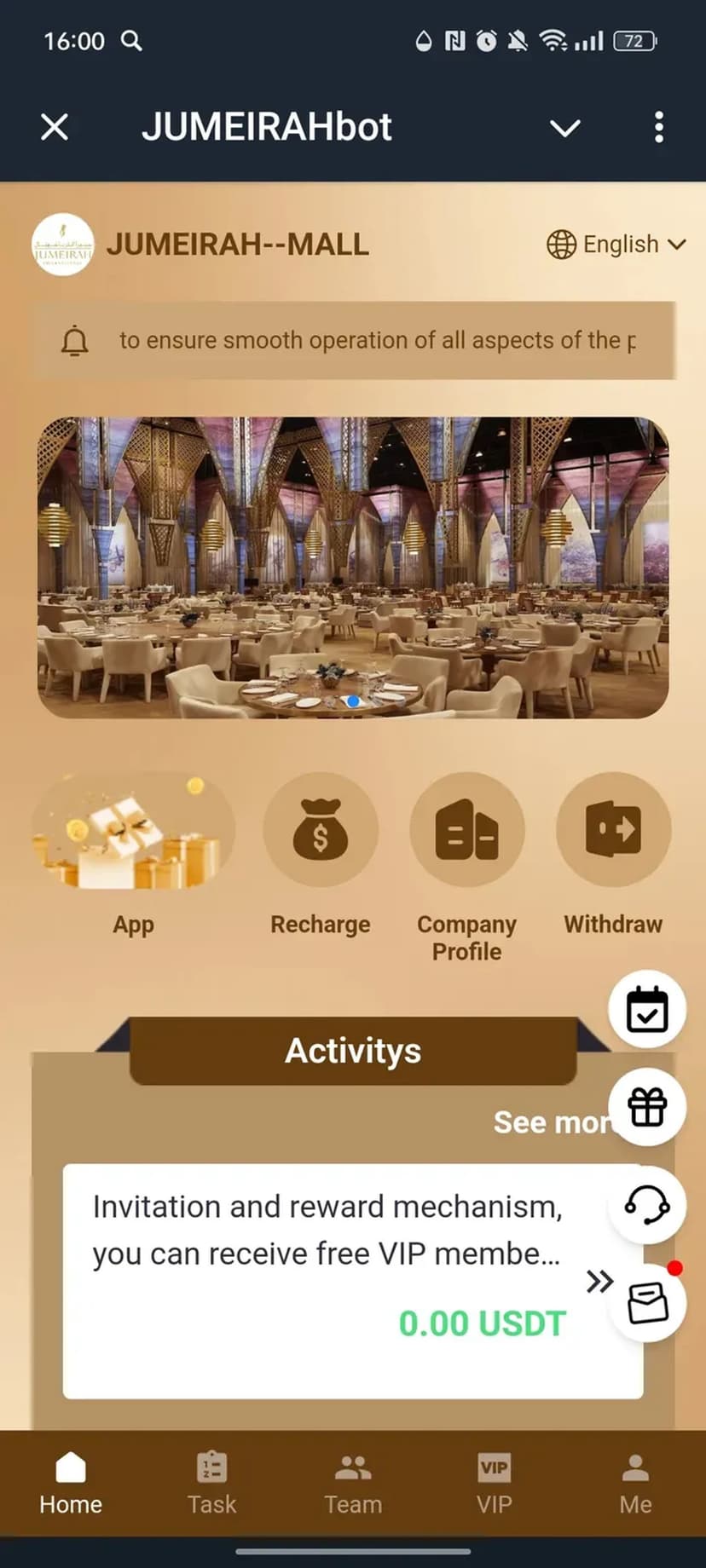 - Настройка выплат и вывод средств на указанный адрес USDT через Telegram.