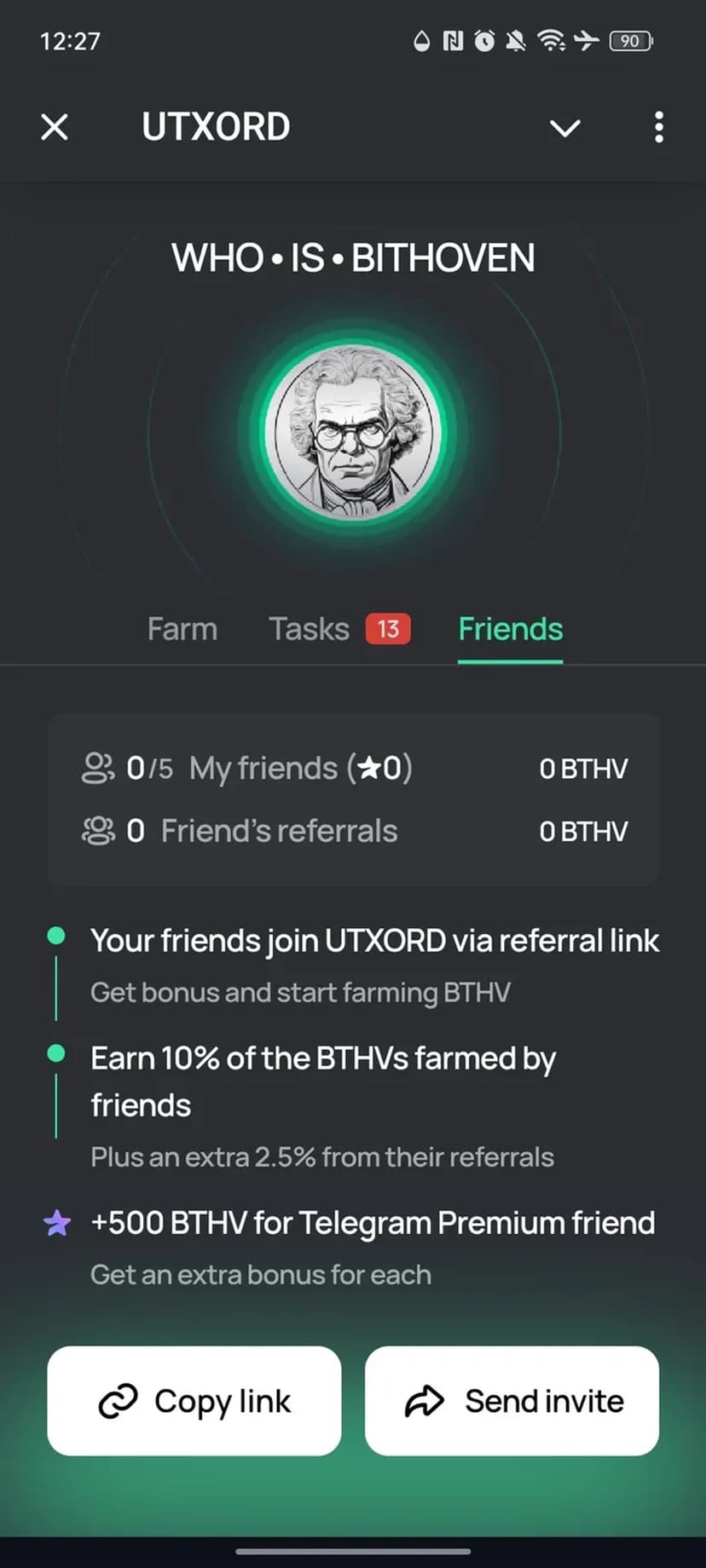 - Начисление BTHV: баллы учитываются за приглашения, активность в чате и подписки на соцсети.