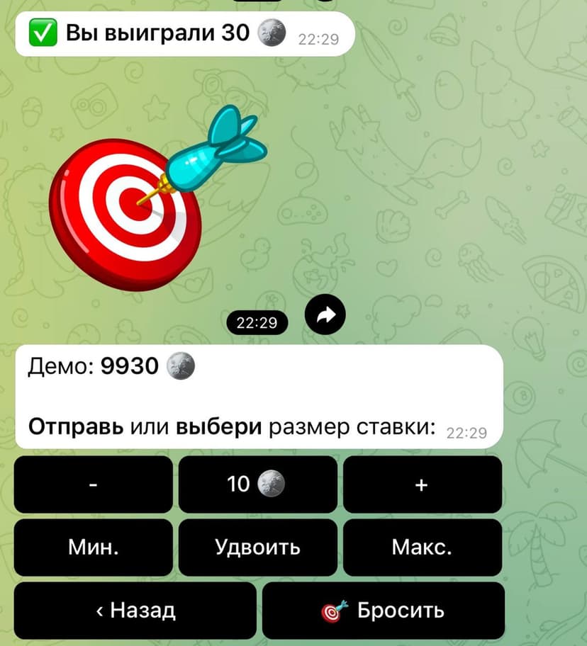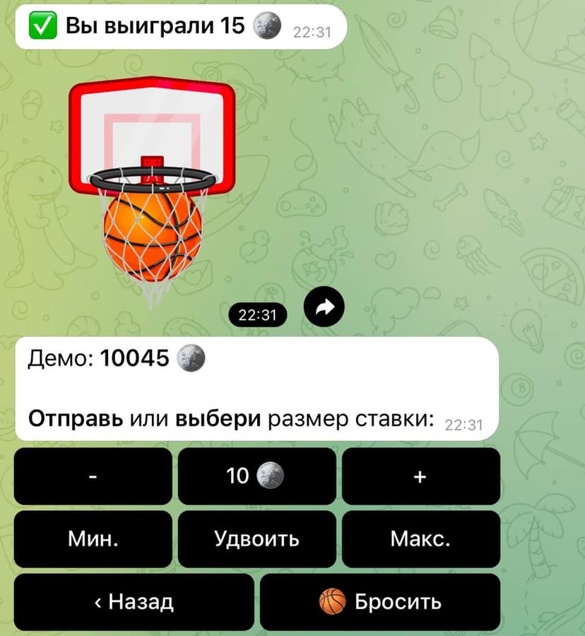 - Использование возможностей Telegram для обмена сообщениями и уведомлений о результатах ставок
