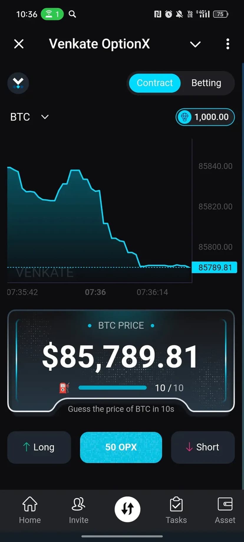 Venkate OptionX — мини‑приложение для торговли бинарными опционами прямо в Telegram, рассчитанное на быстрые сделки и оперативные решения. Пользователь прогнозирует движение цены актива (вверх или вниз) и получает результат за несколько секунд.