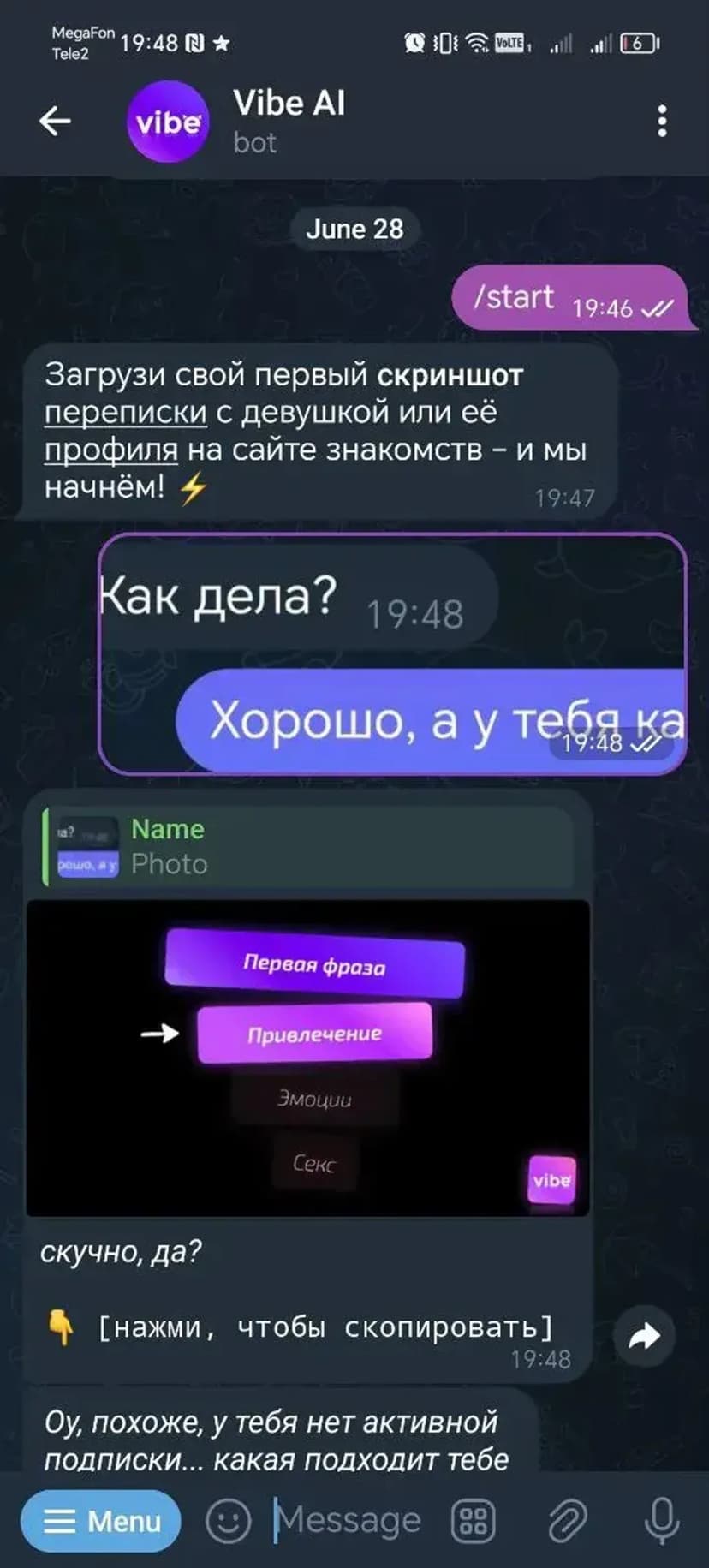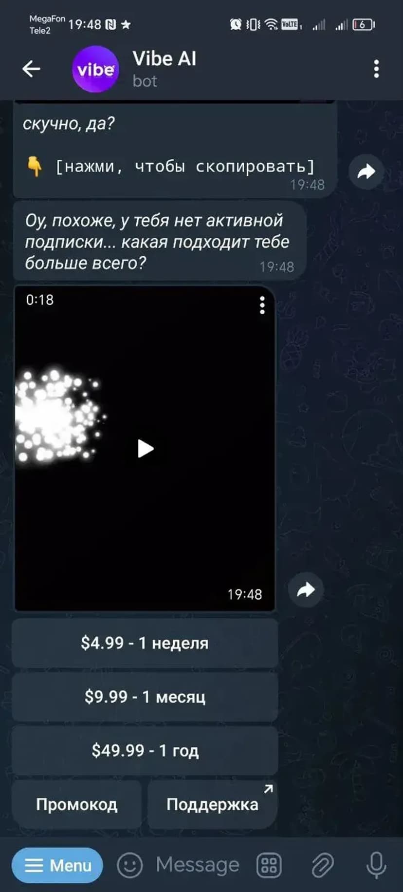 *Нажимая "Открыть в Telegram", вы перейдете к приложению Vibe AI в мессенджере Telegram