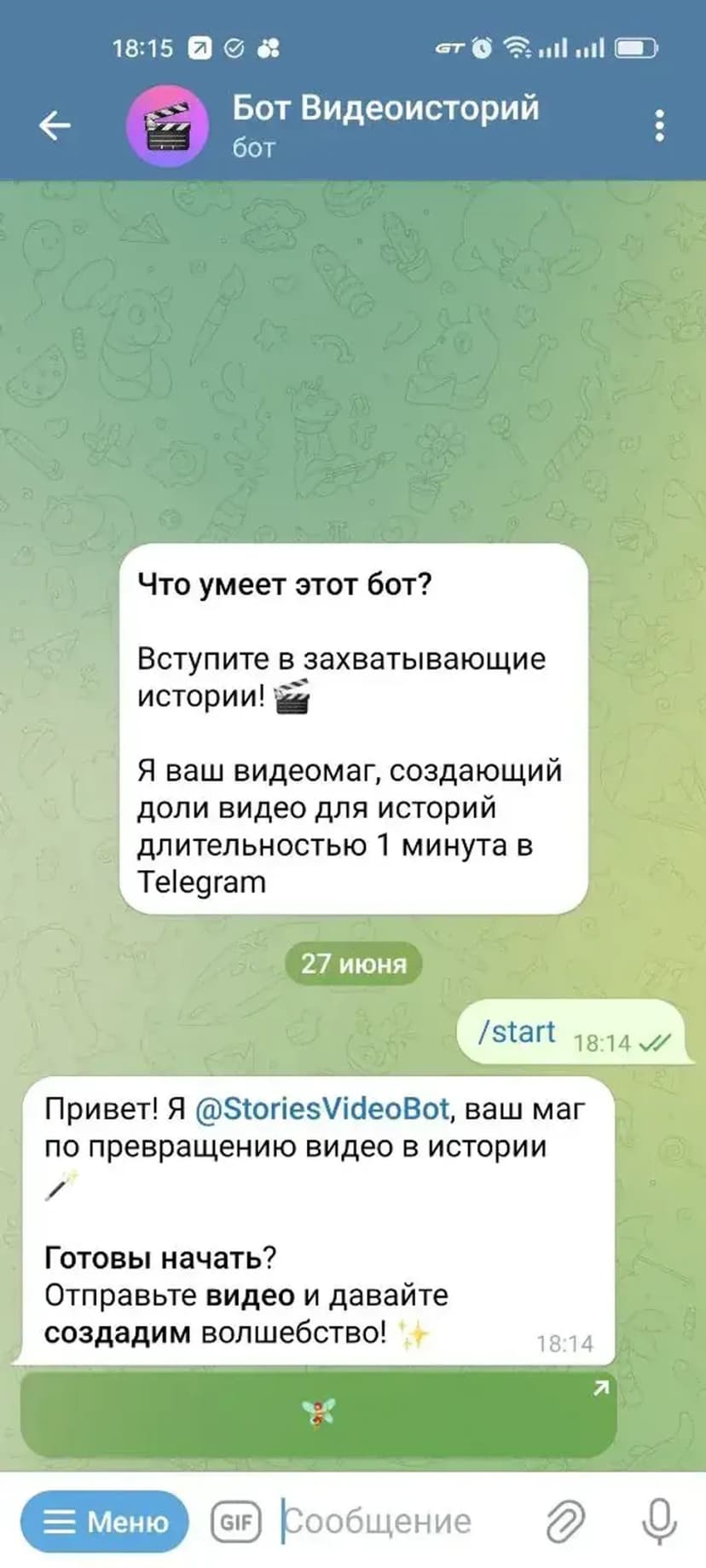 *Нажимая "Открыть в Telegram", вы перейдете к приложению Video Stories Bot в мессенджере Telegram