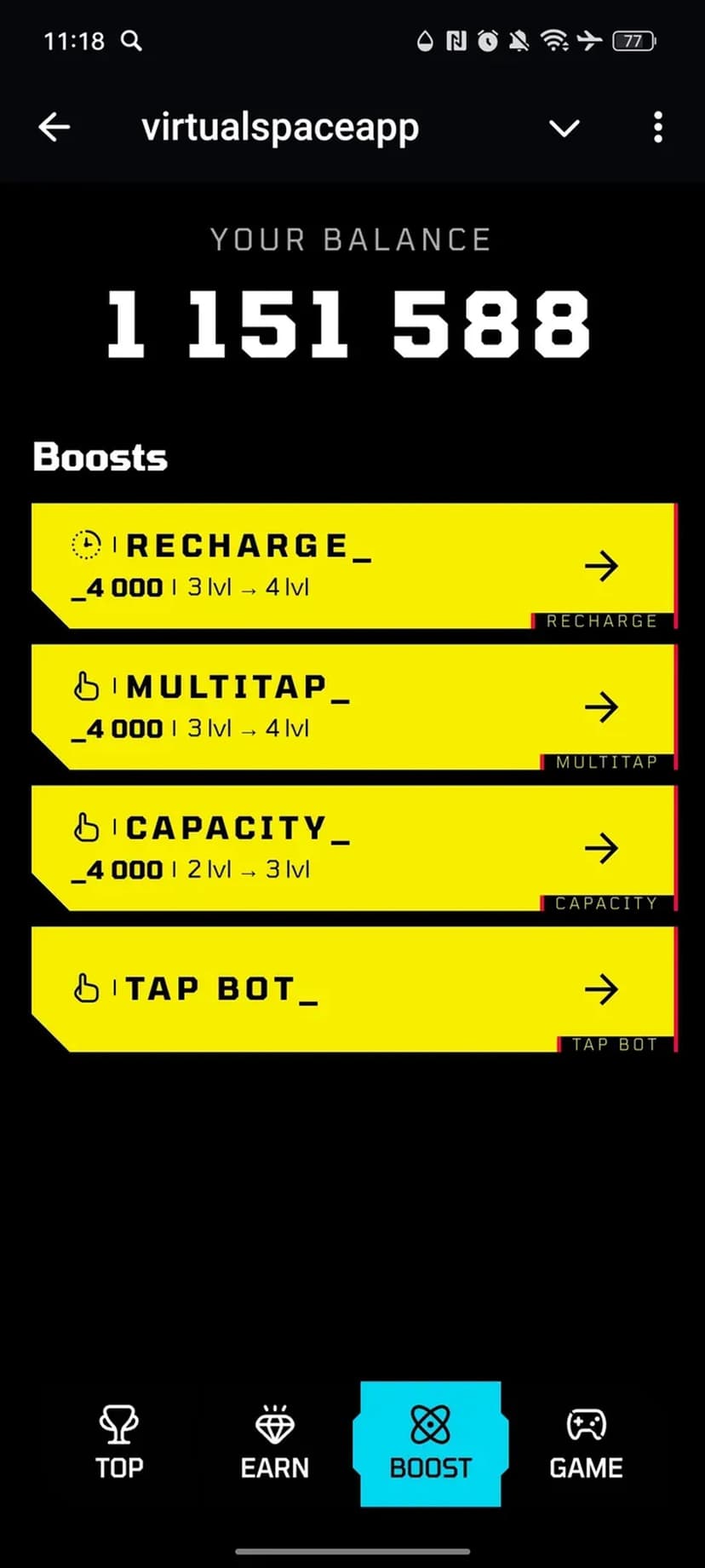 Virtualspaceapp объединяет элементы кликера, исследовательской игры и инструментов для создания виртуальных миров прямо в Telegram. Игровой процесс фокусируется на накоплении ресурсов и постепенном развитии собственных локаций.