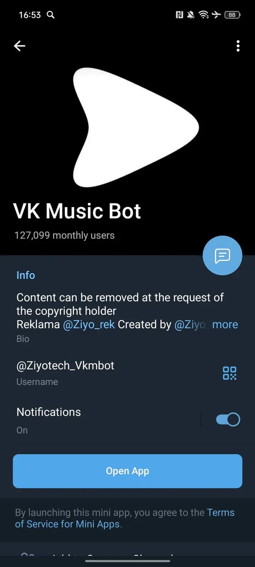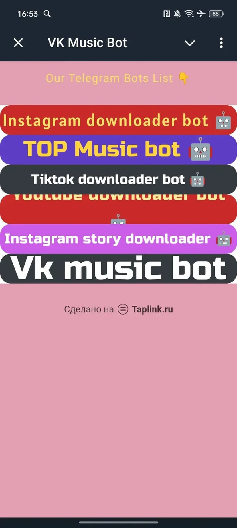 *Нажимая "Открыть в Telegram", вы перейдете к приложению VK Music Bot в мессенджере Telegram