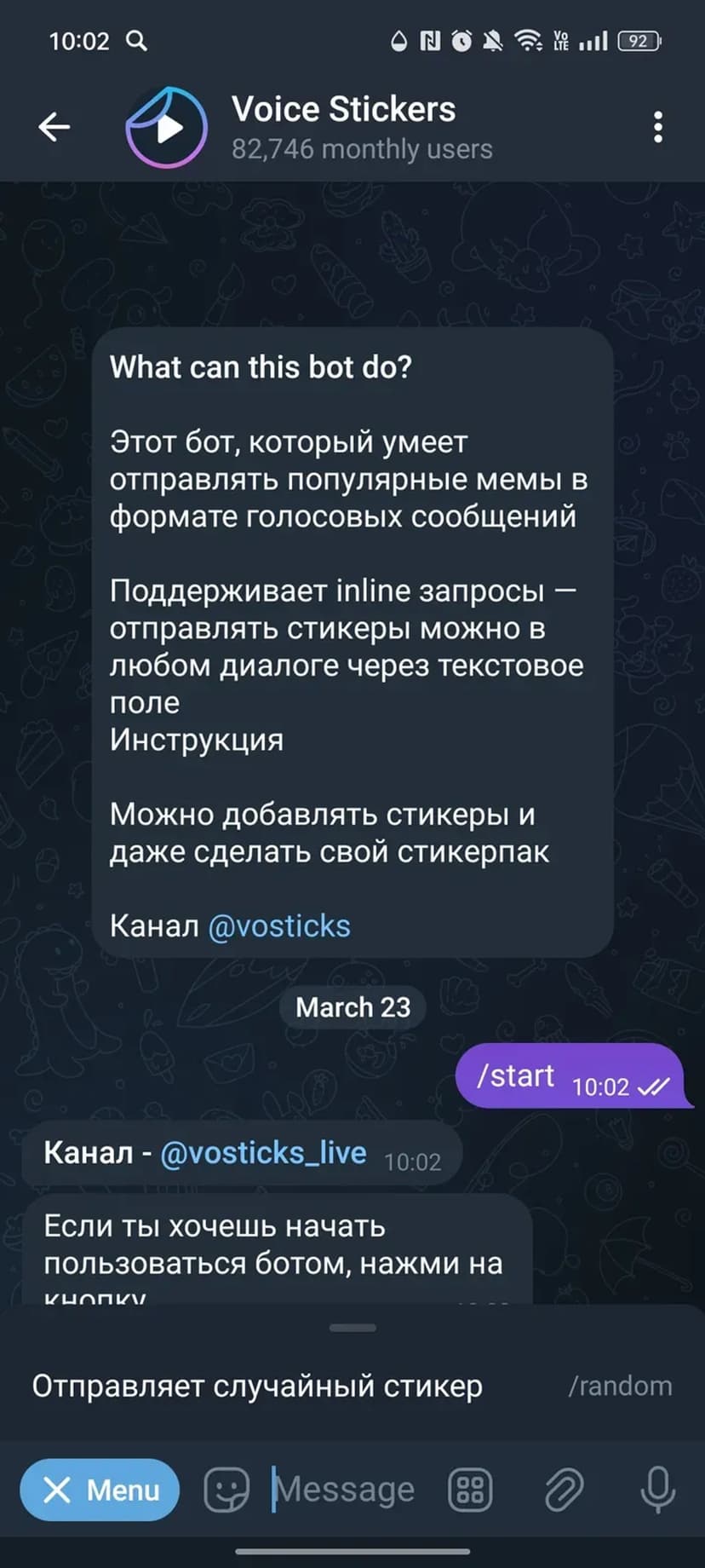 Создавайте и мгновенно отправляйте голосовые стикеры через инлайн‑запросы, управляйте коллекцией.