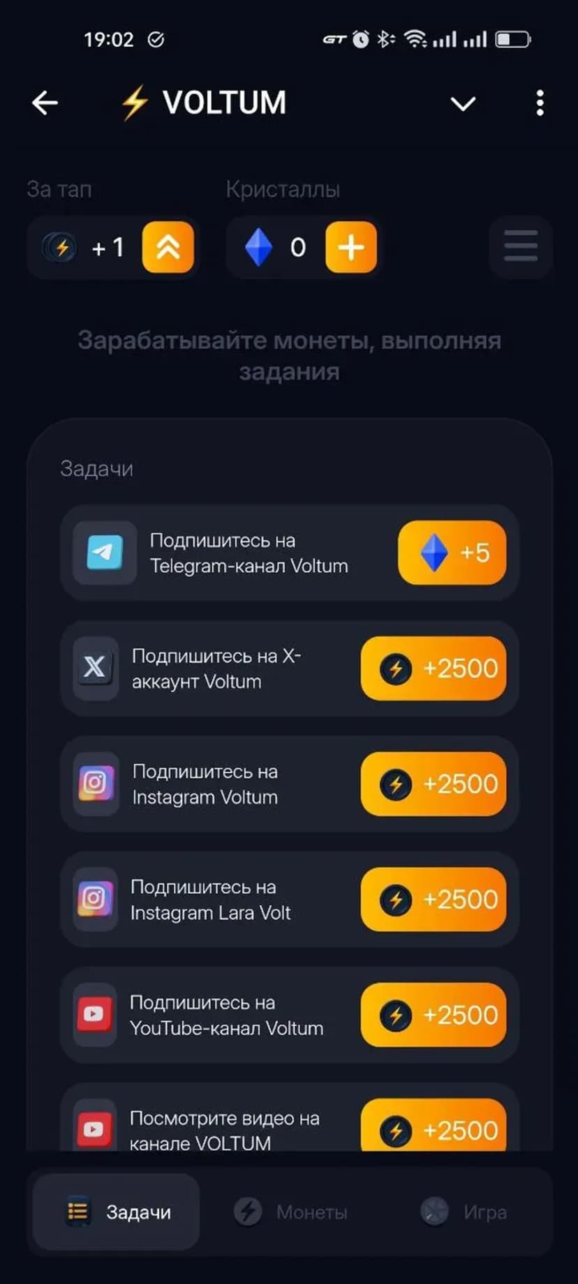 - Начисления: монеты VOLTUM выдаются за активность внутри сервиса.