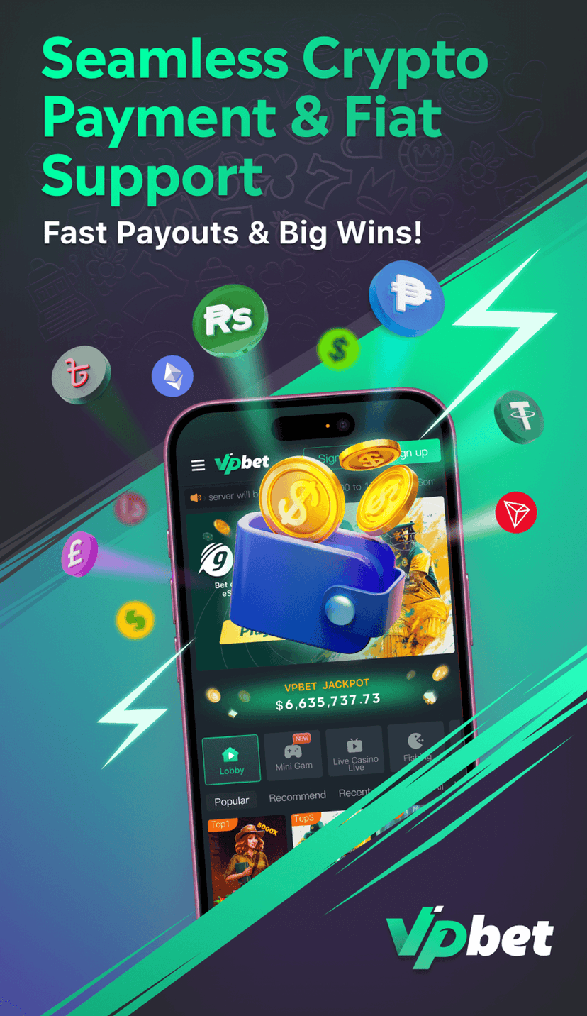 VPBET — доступ к онлайн‑казино и букмекерским ставкам с поддержкой криптовалют. Вход выполняется через Telegram‑аккаунт без необходимости отдельной регистрации; интерфейс прост и понятен, меню разделено на слоты, live‑казино, спортивные ставки и специальные предложения.