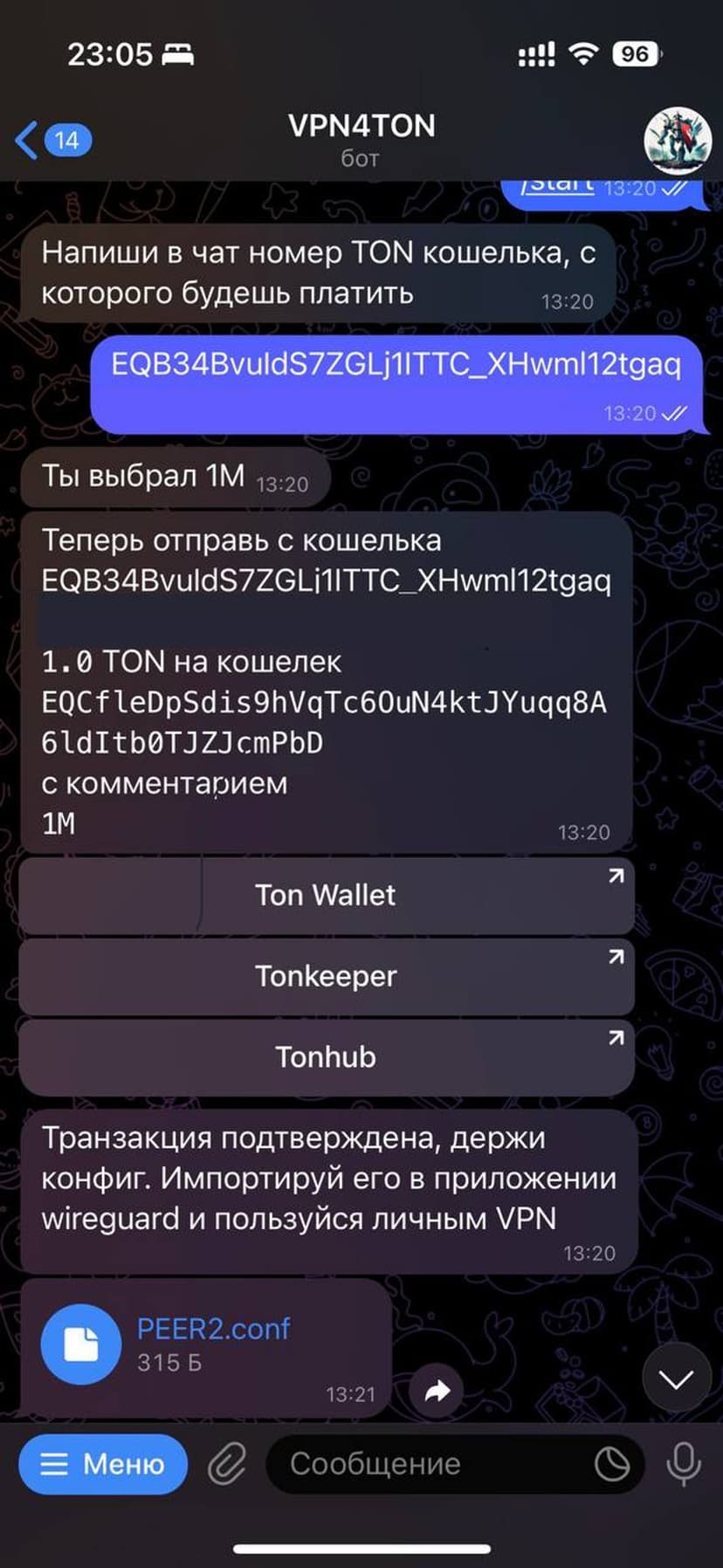 *Нажимая "Открыть в Telegram", вы перейдете к приложению VPN4TON в мессенджере Telegram