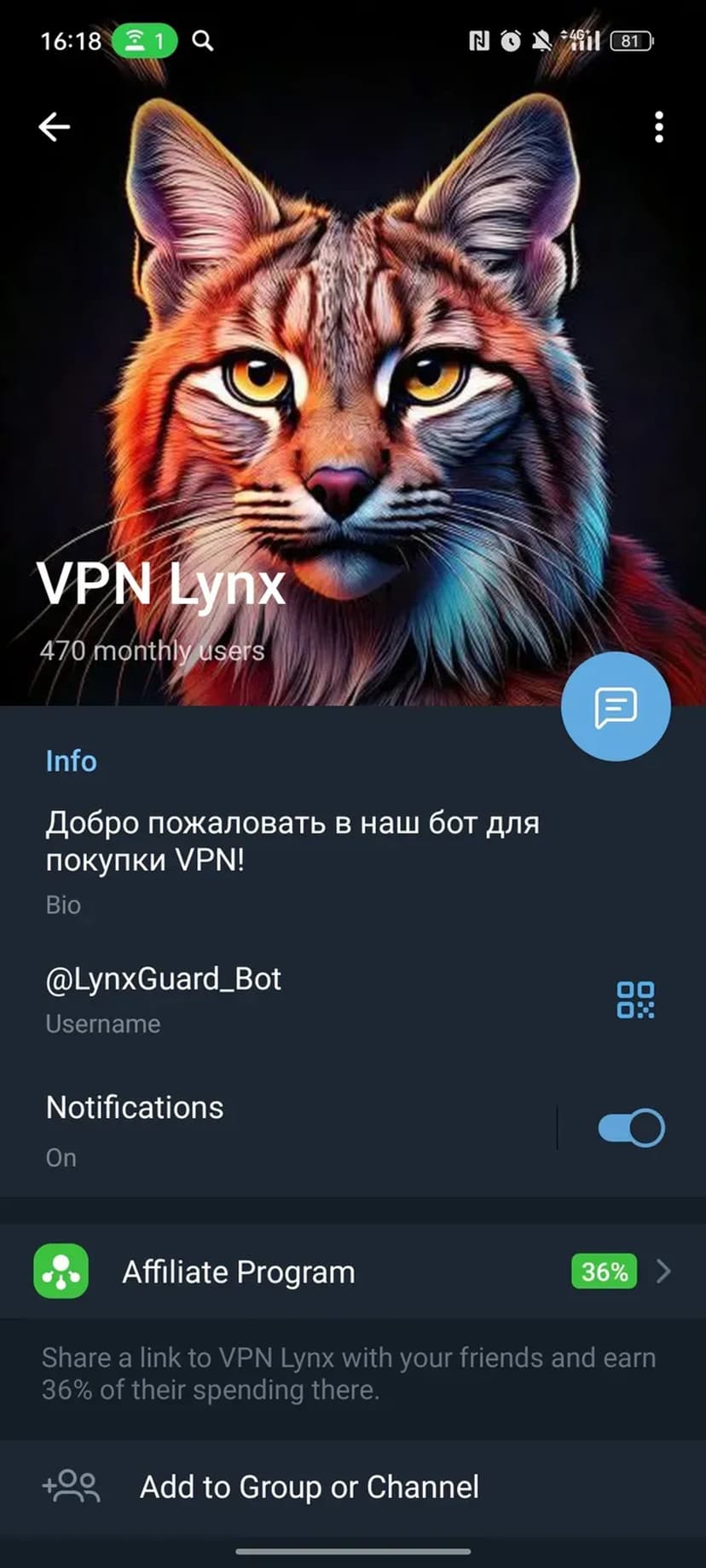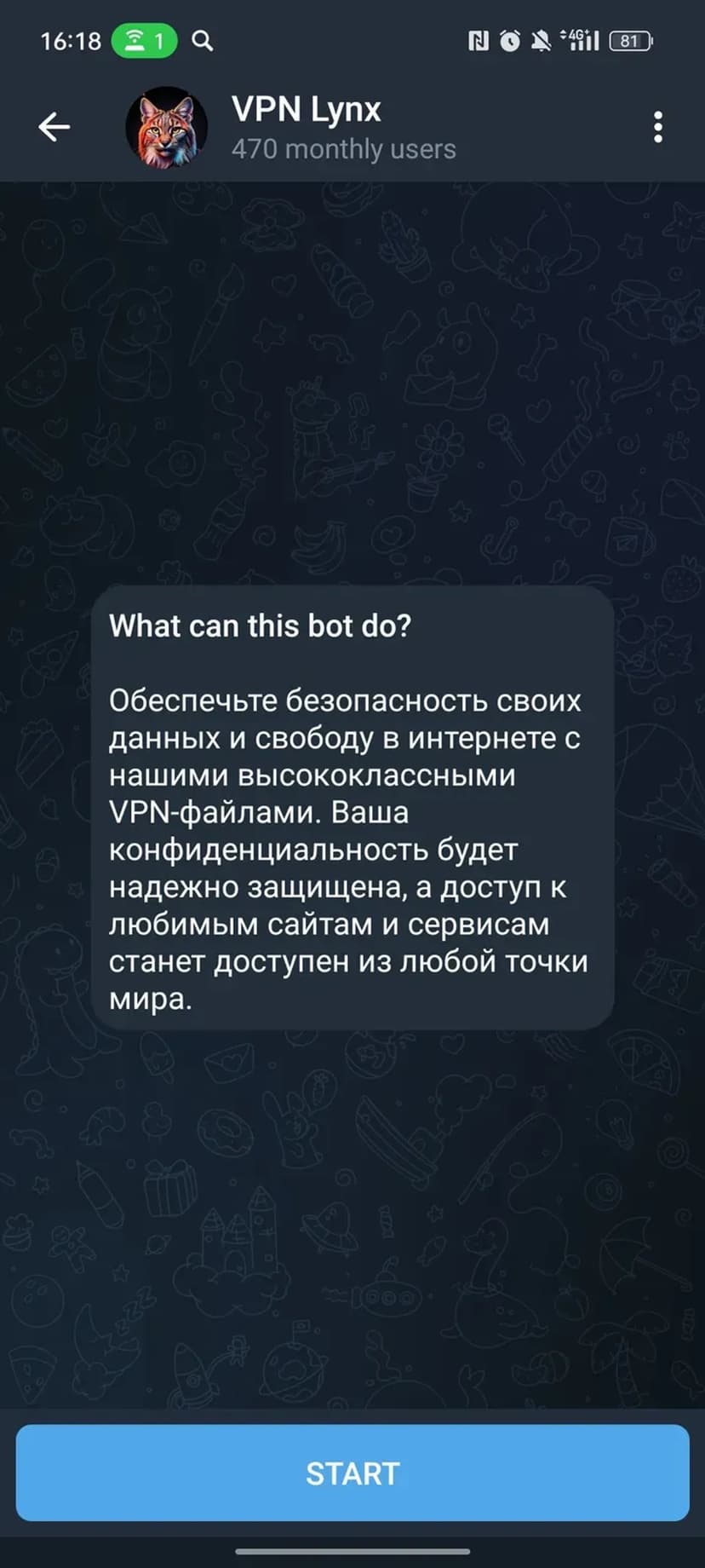 *Нажимая "Открыть в Telegram", вы перейдете к приложению VPN Lynx в мессенджере Telegram