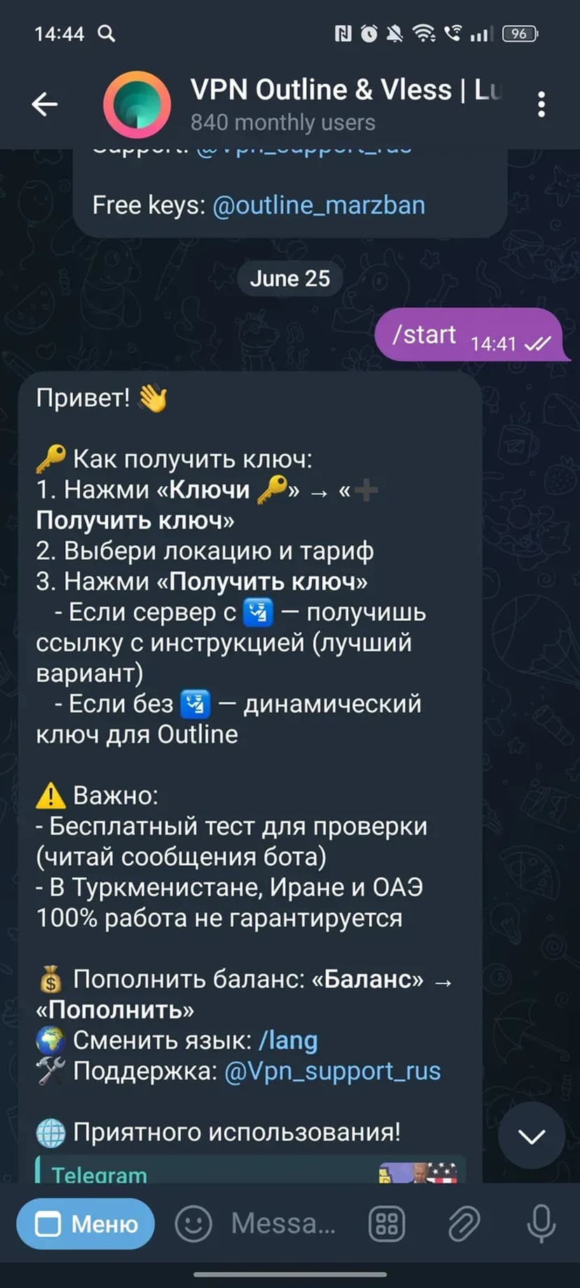 Быстрый и безопасный VPN прямо в Telegram. Сервис предоставляет удобный и быстрый способ получить рабочий VPN‑ключ для повышения анонимности и обхода блокировок.