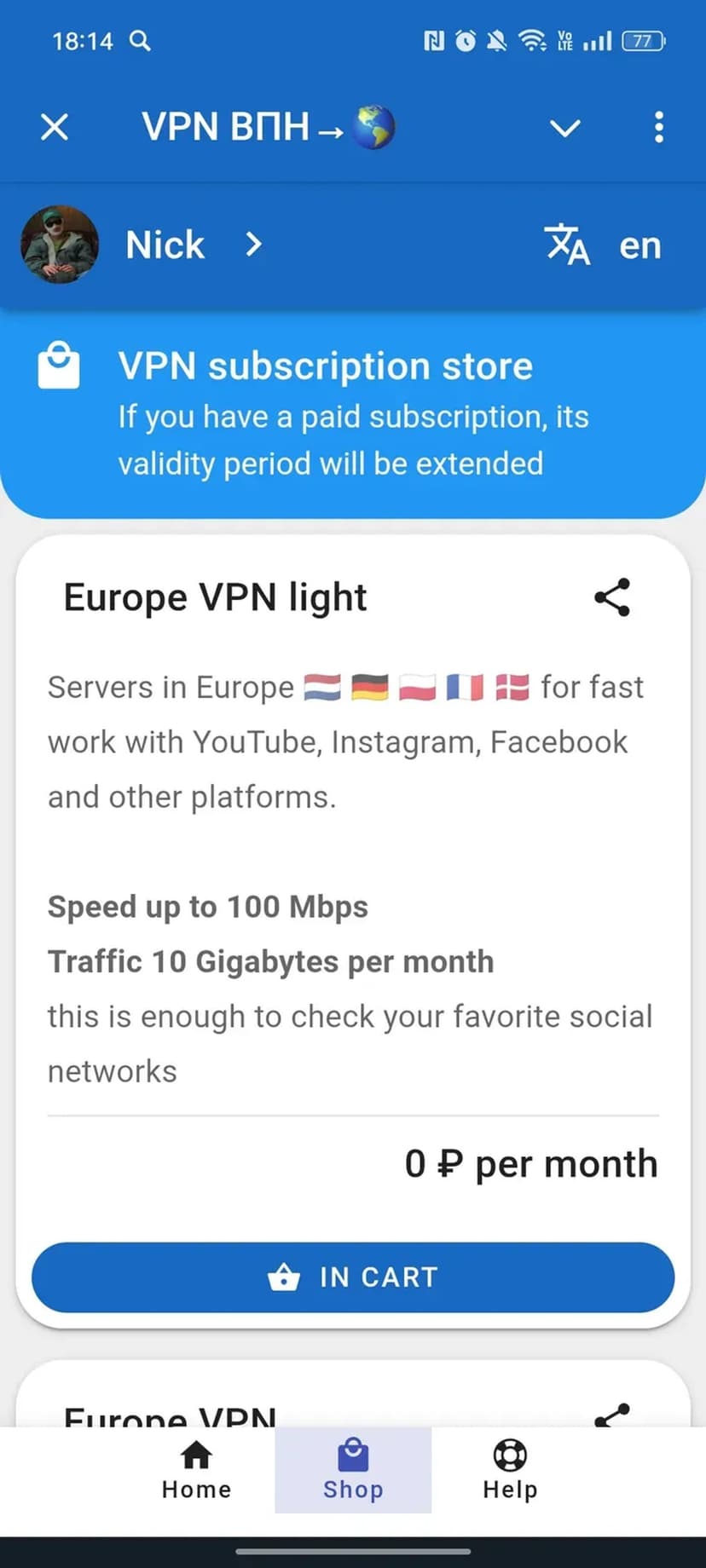 - Бесплатная базовая подписка с европейским сервером по умолчанию