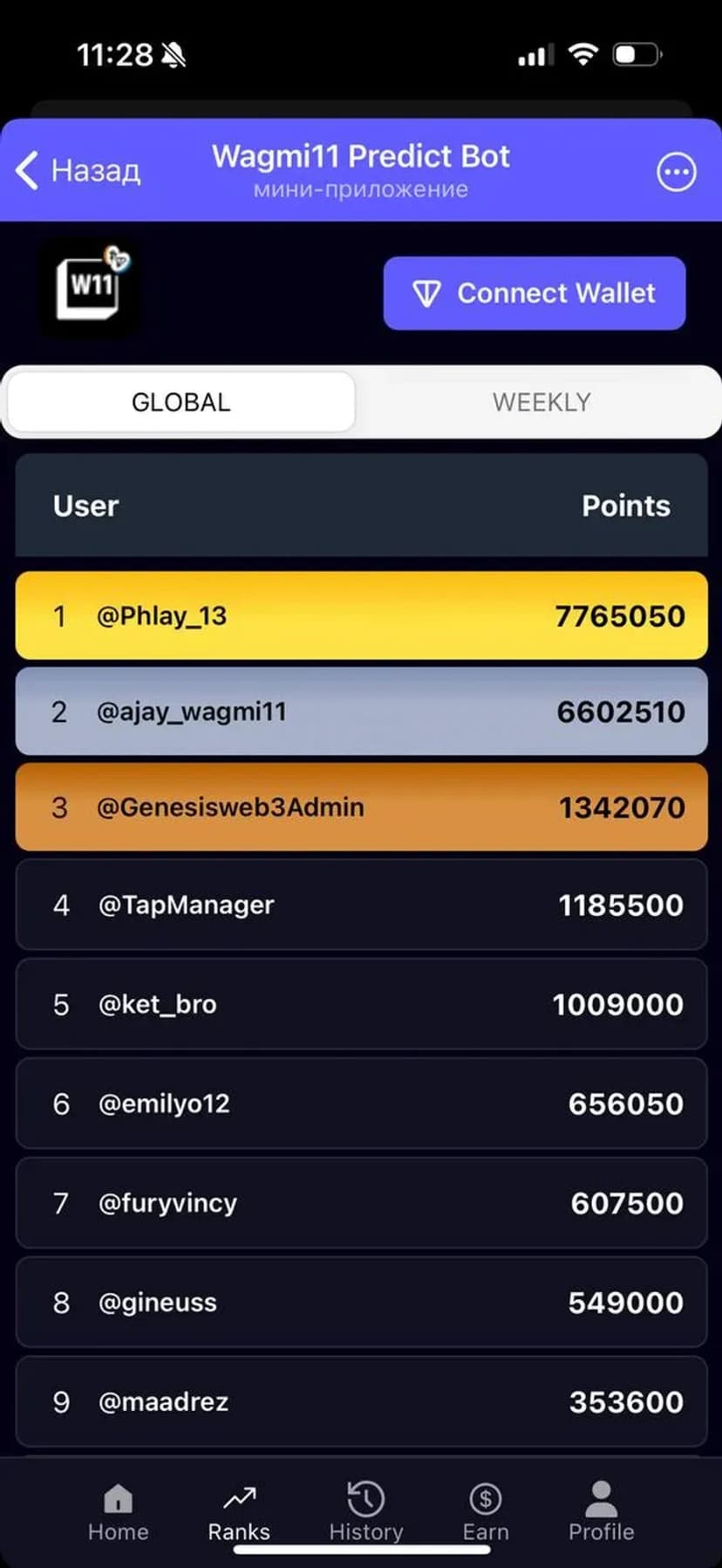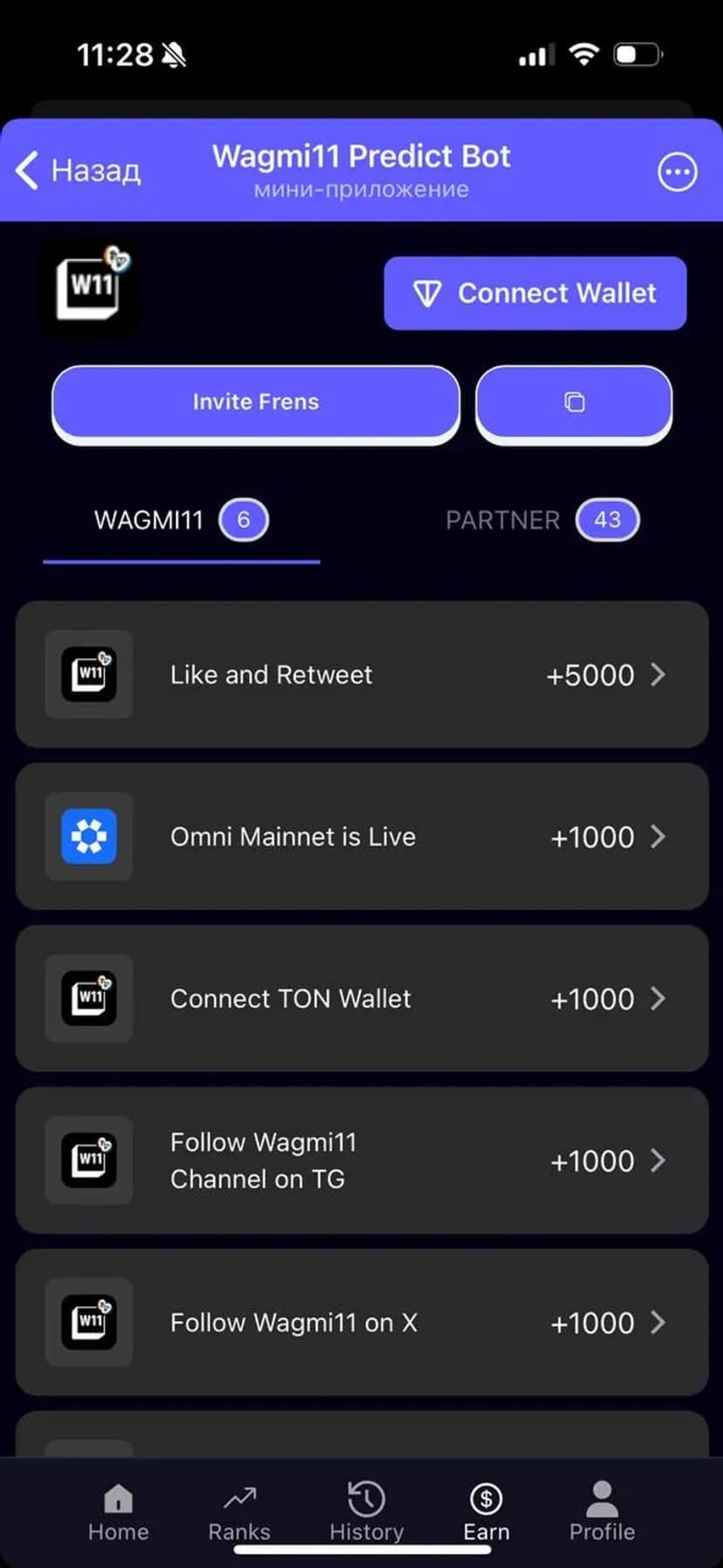 *Нажимая "Открыть в Telegram", вы перейдете к приложению Wagmi11 Predict Bot в мессенджере Telegram