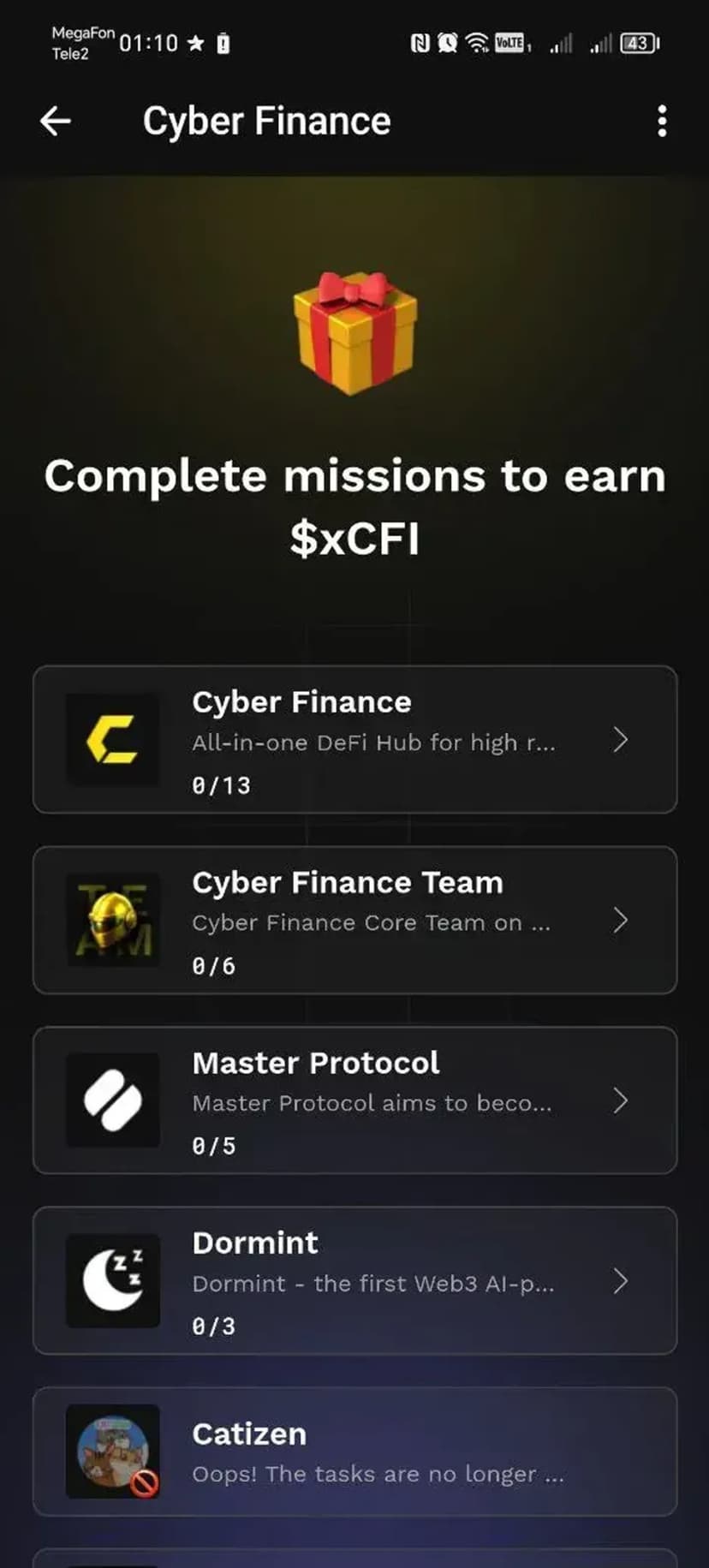 - Вознаграждения: начисление токенов $CFI за активность — их можно использовать внутри экосистемы или накапливать для будущих функций.