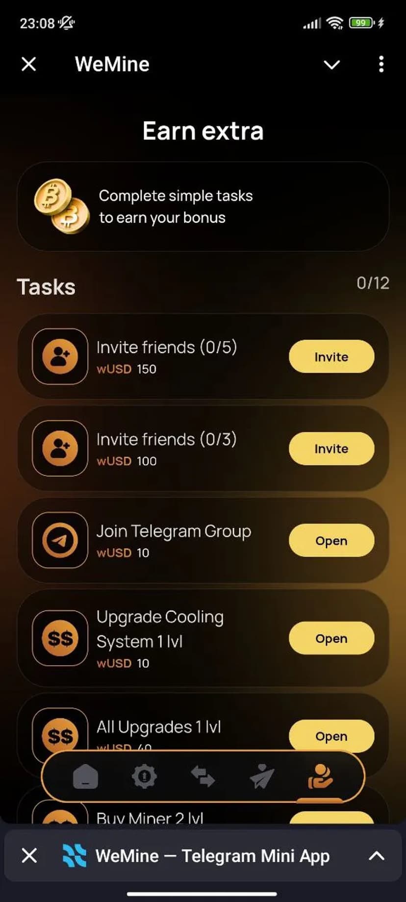 *Нажимая "Открыть в Telegram", вы перейдете к приложению WeMine в мессенджере Telegram
