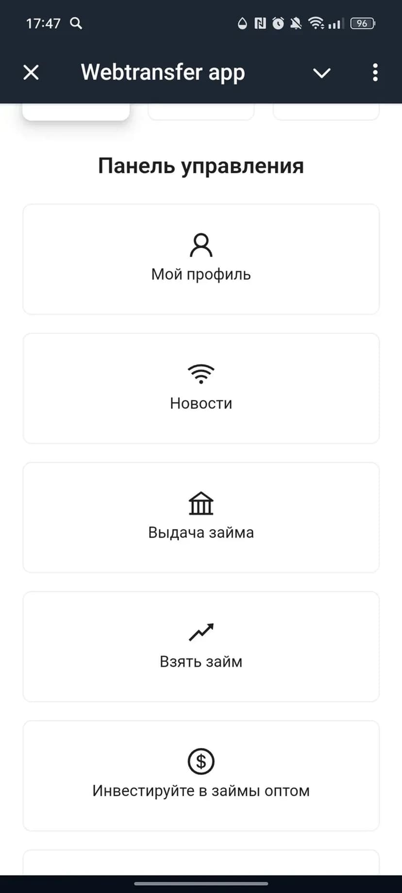 - Оформление займов: быстрый доступ к p2p‑операциям без перехода в сторонние сервисы.
