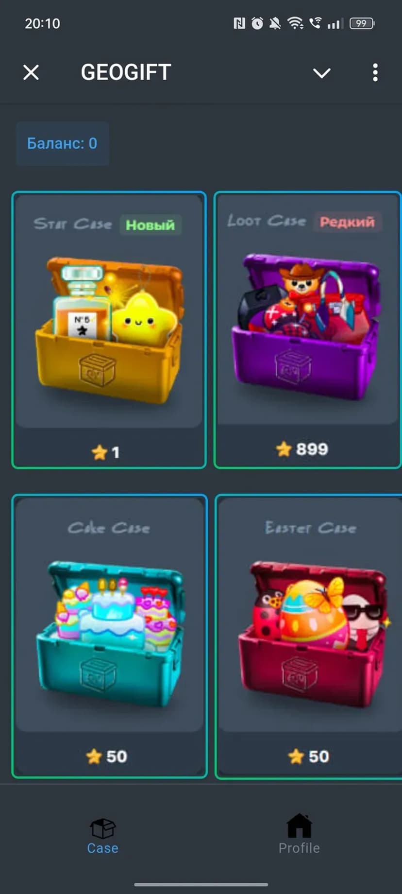 Открывайте кейсы с гарантированными утешительными призами и монетизируйте выигрыши.