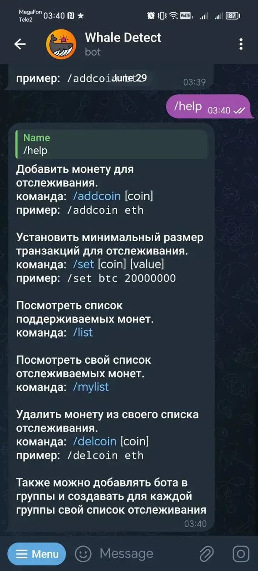 *Нажимая "Открыть в Telegram", вы перейдете к приложению Whale Detect в мессенджере Telegram