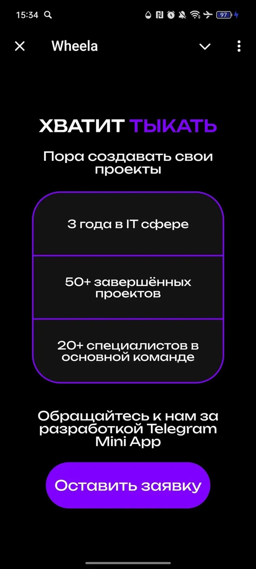 *Нажимая "Открыть в Telegram", вы перейдете к приложению Wheela Agency в мессенджере Telegram