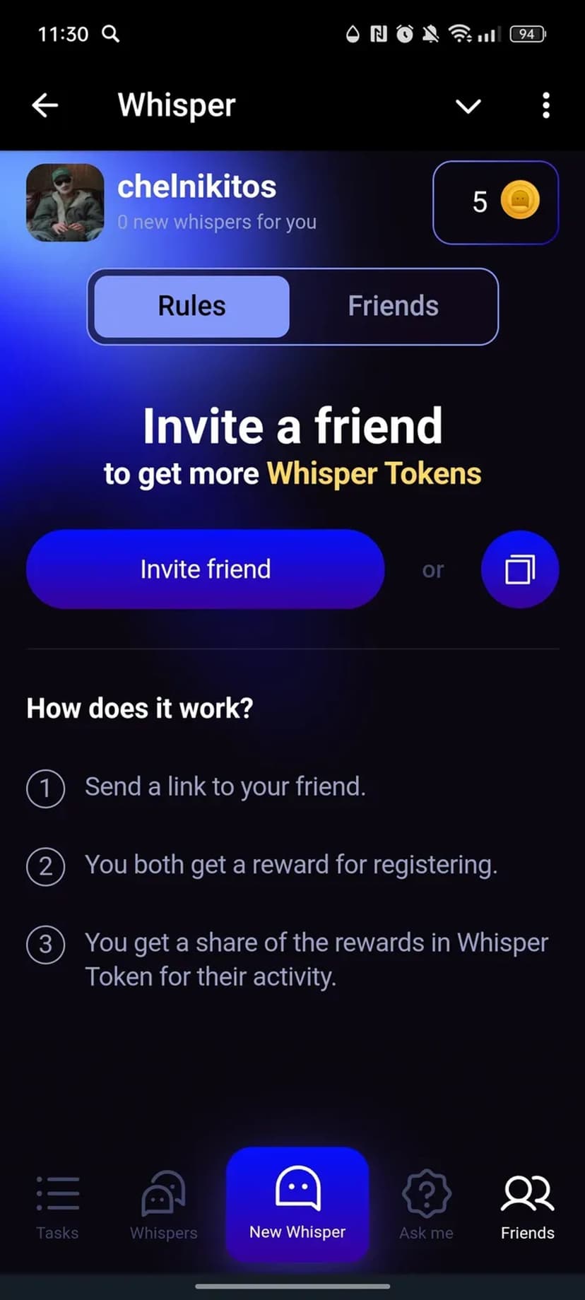 Анонимные послания по ссылке — читать за Whisper tokens; токены дают задания и приглашения