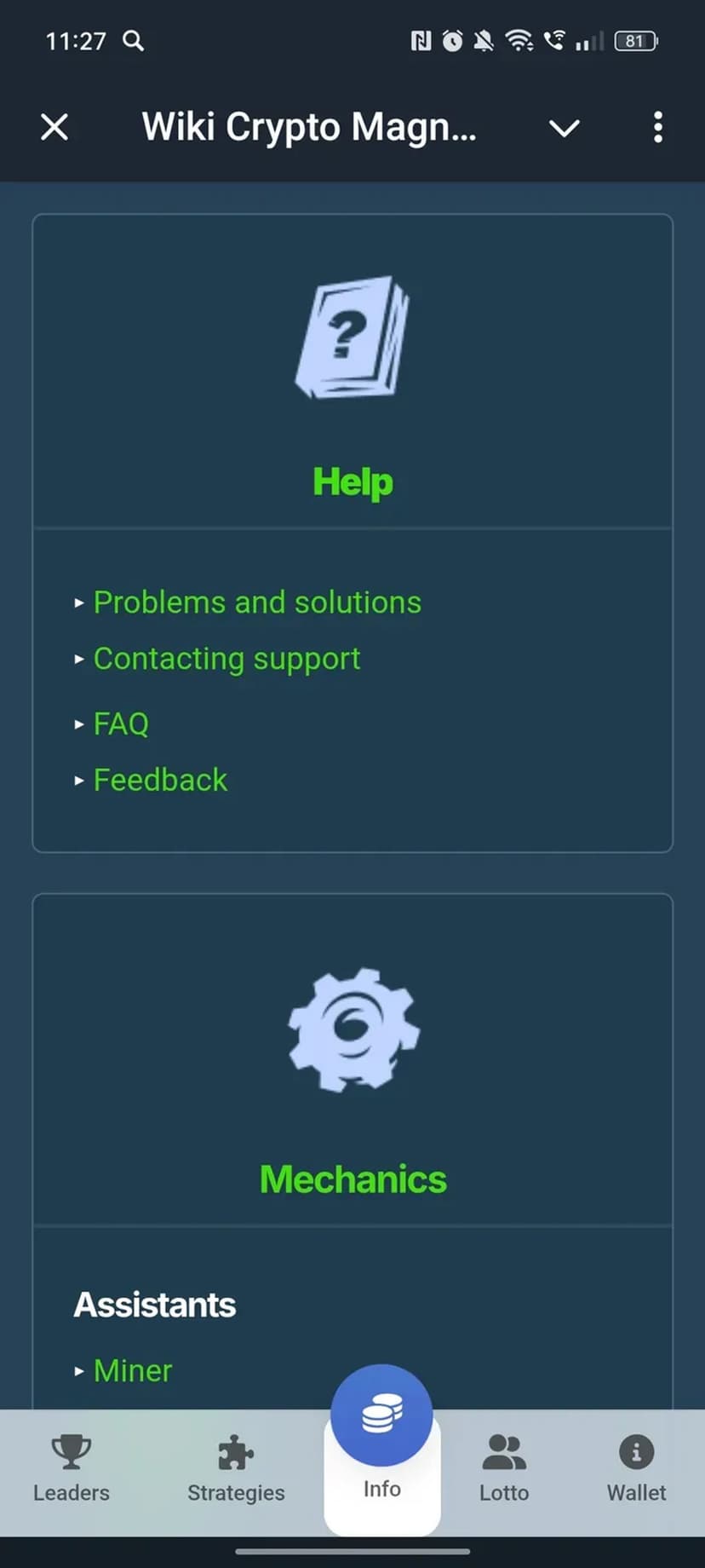 Ограничения: доступ возможен через Telegram с обязательной авторизацией; информация поддерживается сообществом и не является официальным источником; NFT-помощники и WIKI coin имеют ценность только внутри сообщества Crypto Magnate.