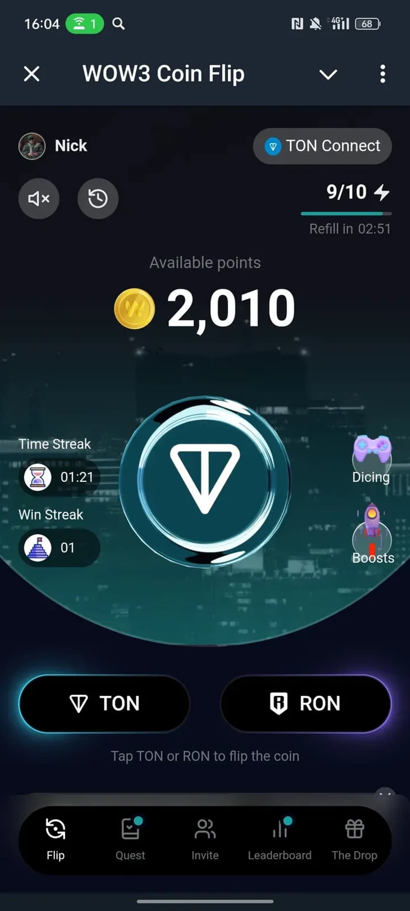 WOW3 Coin Flip — компактная мини-игра для мгновенного броска монеты от команды WOW3, создателей социальных NFT-портфолио. В основе — простая механика с быстрым отображением результата.