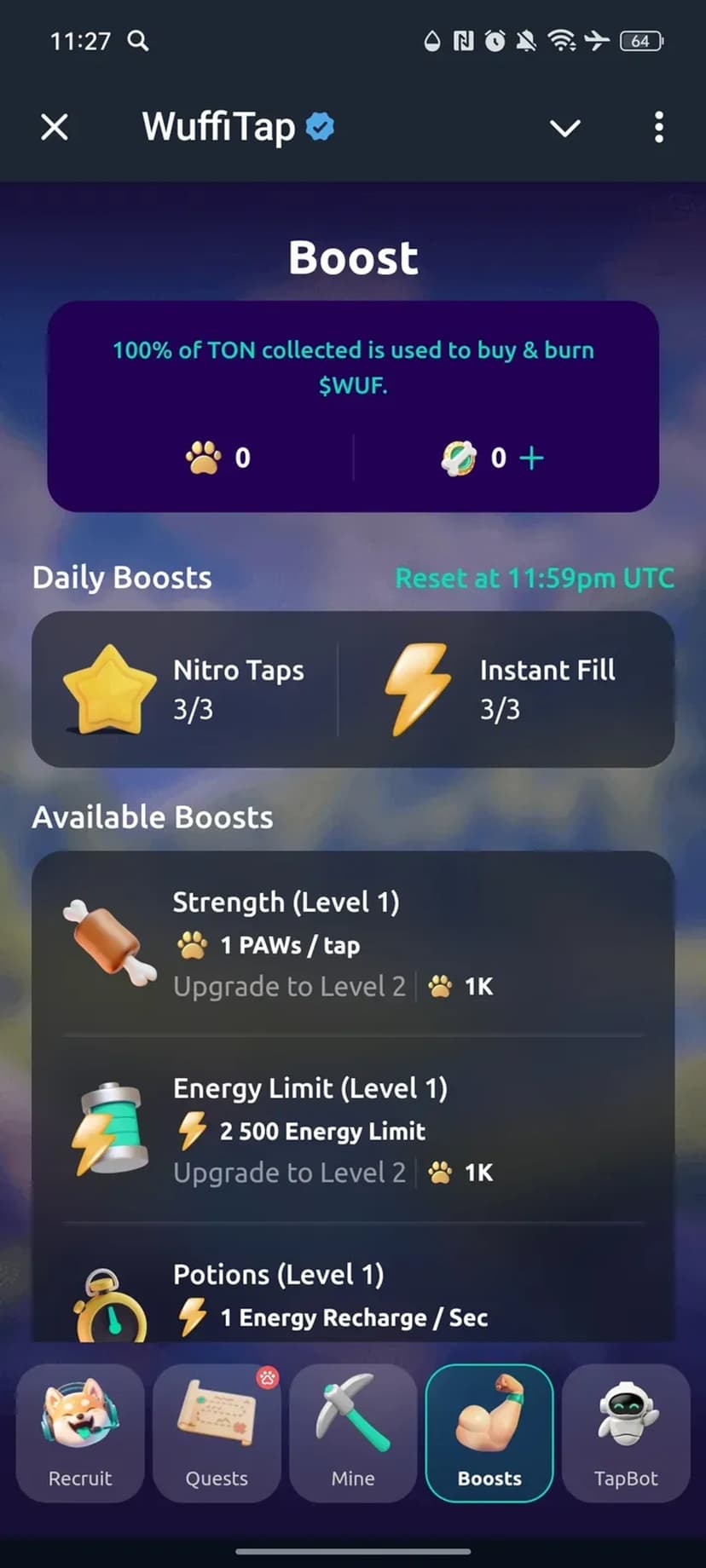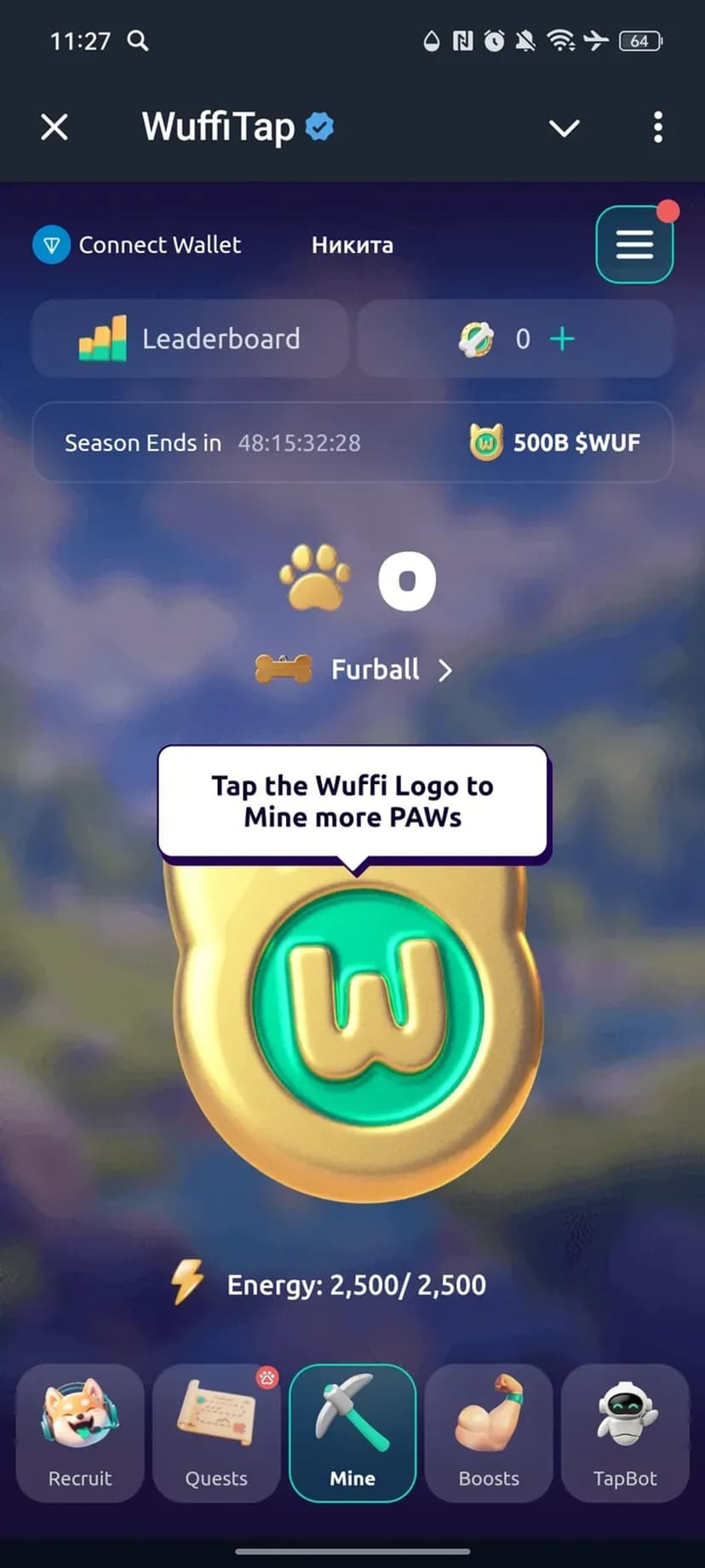 Геймифицированный майнинг: кликай, выполняй задания и зарабатывай $WUF; TON покупает и сжигает $WUF.