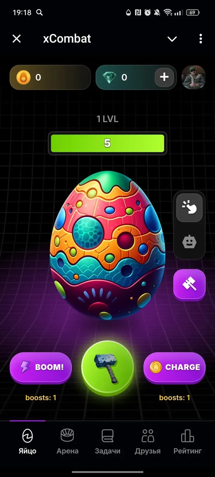 xCombat — кликер с элементами коллекционирования и PvP. На начальном этапе игроки фармят, разбивая яйца виртуальным молотком и получая монеты, алмазы и коллекционные карты.