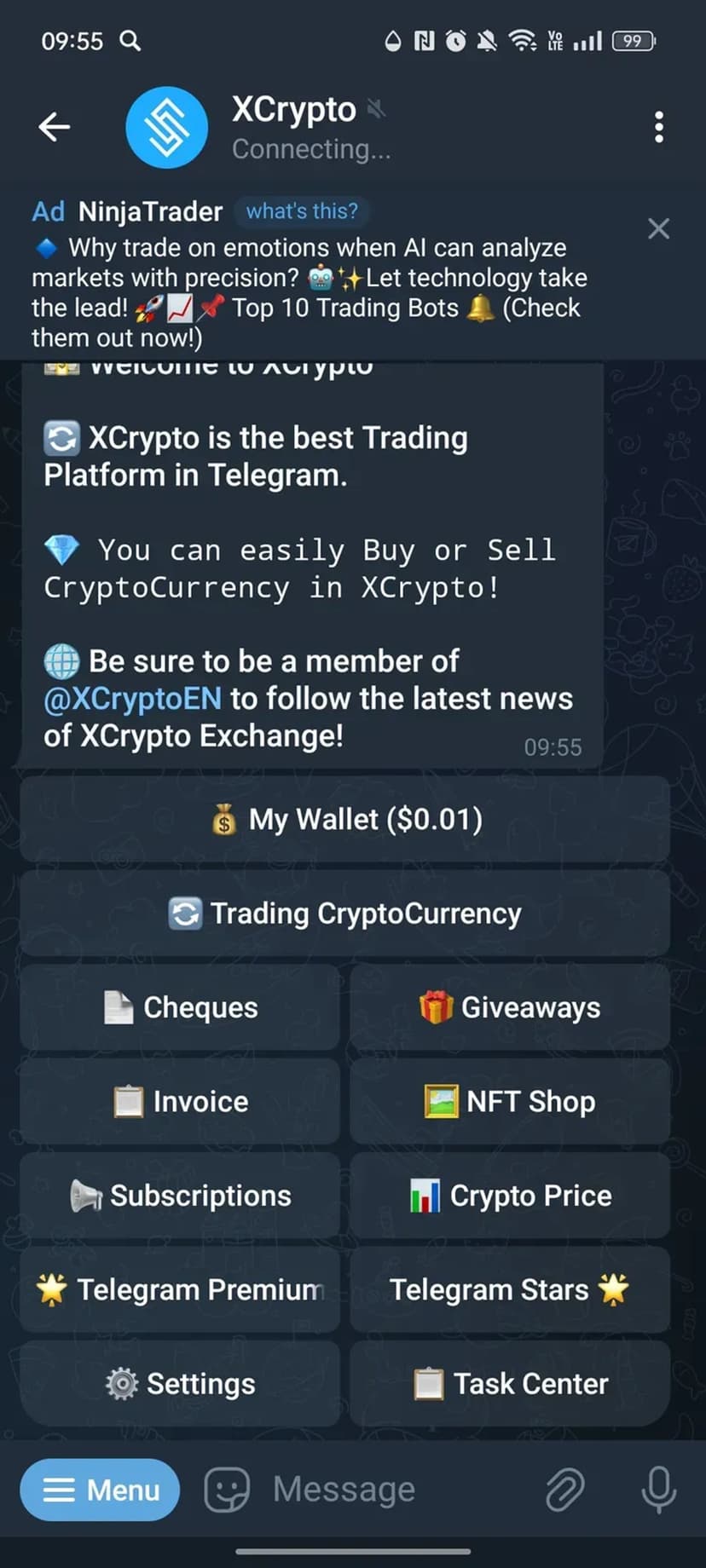 XCrypto — торговая платформа, встроенная в Telegram, которая обеспечивает полный цикл операций с криптовалютой: покупка и продажа популярных монет, хранение активов внутри мессенджера, а также отправка и получение средств между пользователями. Работа максимально упрощена и не требует отдельной долгой регистрации.