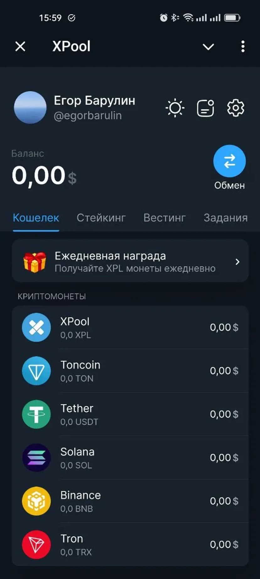 XPool — мультивалютный кошелёк в формате мини‑приложения, который объединяет хранение активов и инструменты для получения пассивного дохода через стейкинг. Пользователи могут оперативно управлять средствами без установки дополнительных программ.