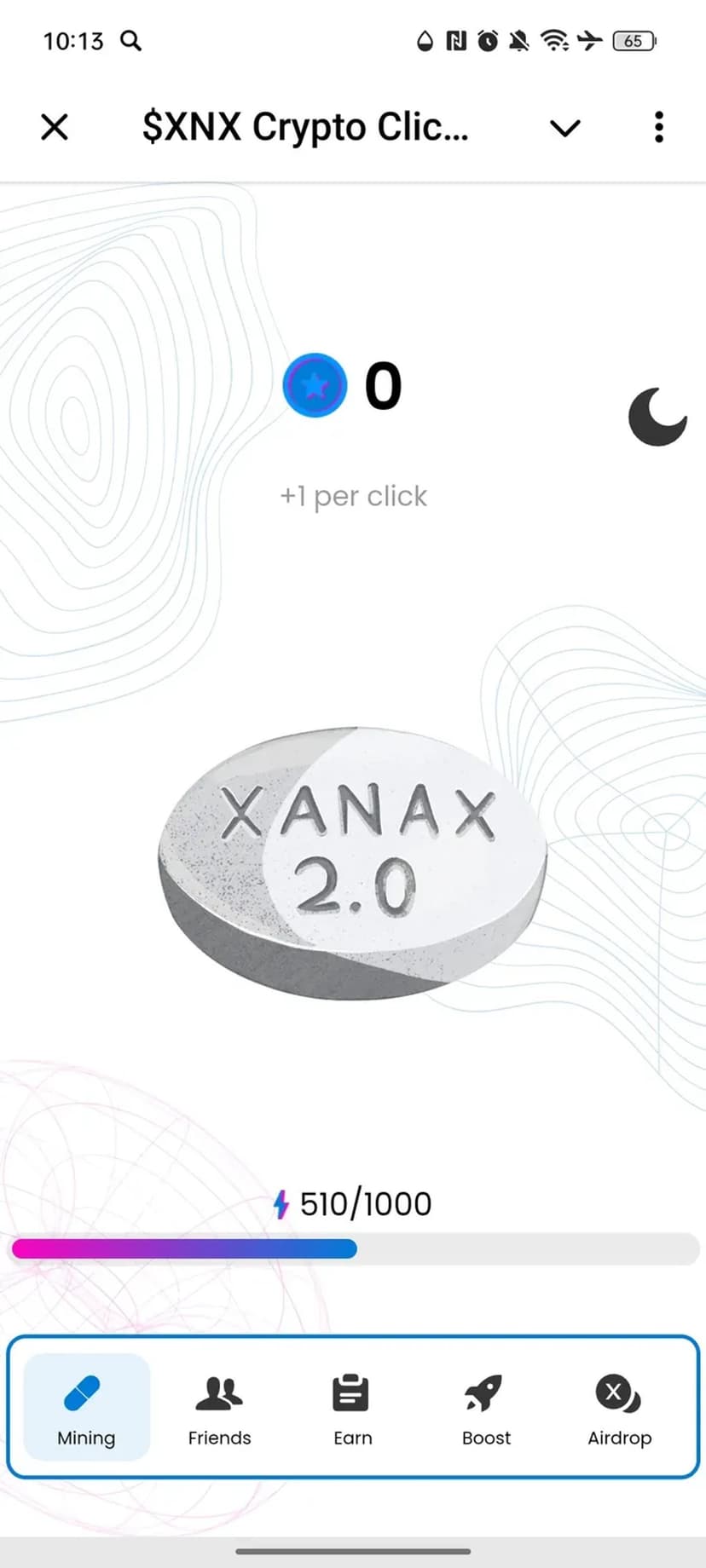 $XNX Crypto Clicker сочетает простую механику кликера с криптоэкономикой: при кликах игрок получает внутриигровые «пилюли» $XANAX, которые можно обменять на игровые монеты. Накопленные монеты тратятся на улучшения и прогресс в игре, а по заявленной механике часть средств доступна для конвертации в реальные деньги или криптовалюту через встроенные инструменты.