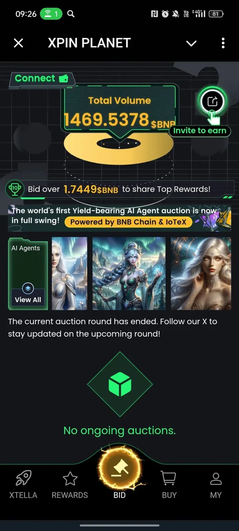 Создавайте dNFT, участвуйте в аукционах AI‑агентов и майните токены $XP на BNB