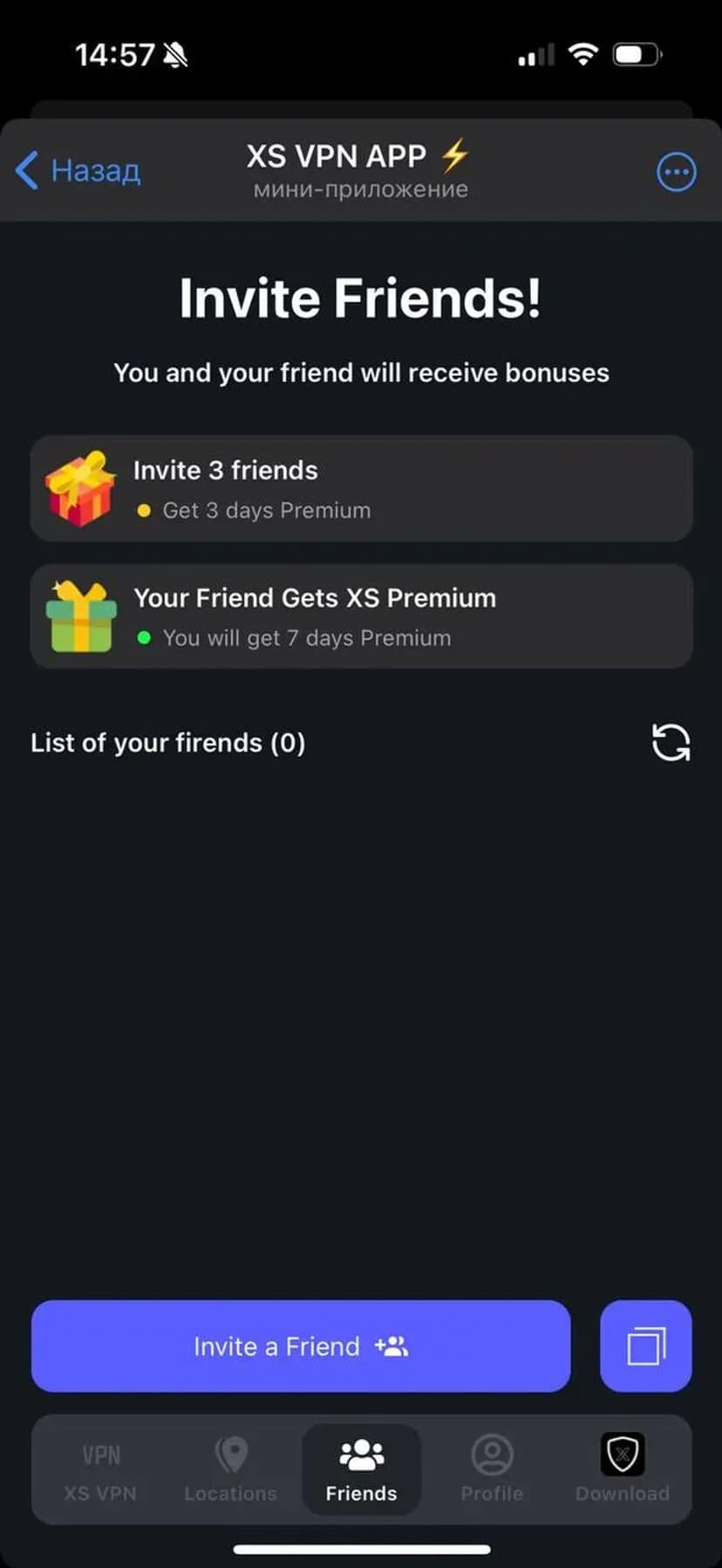 XS VPN APP ⚡️ — мини‑приложение в Telegram для быстрого и удобного доступа к VPN на iOS и Android. Подключение в один тап через Telegram‑аккаунт, без необходимости регистрации или ввода личных данных.