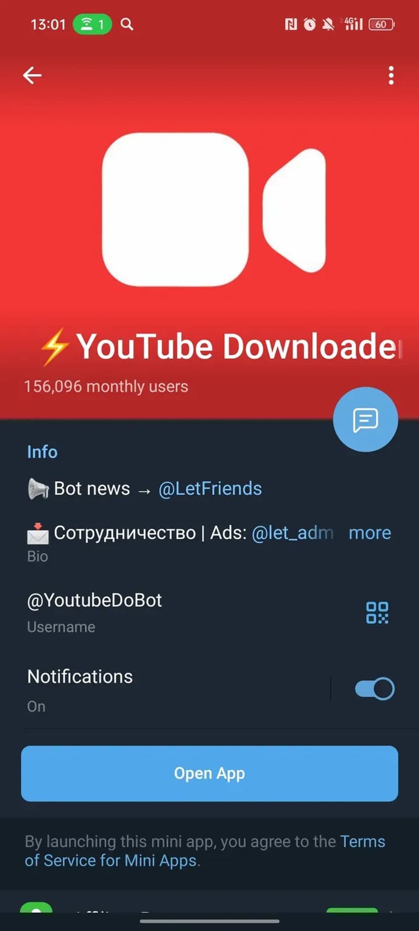 *Нажимая "Открыть в Telegram", вы перейдете к приложению ⚡️YouTube Downloader | Music в мессенджере Telegram