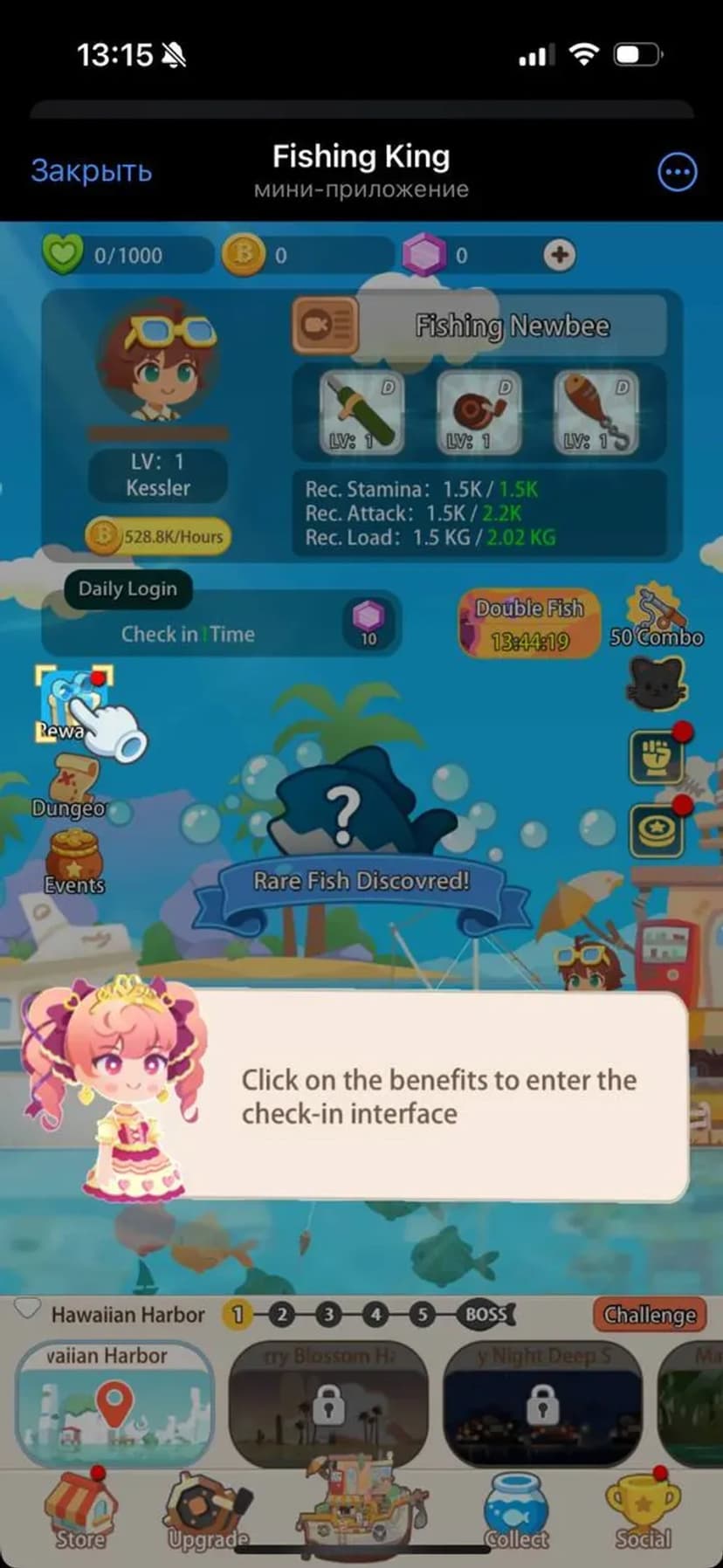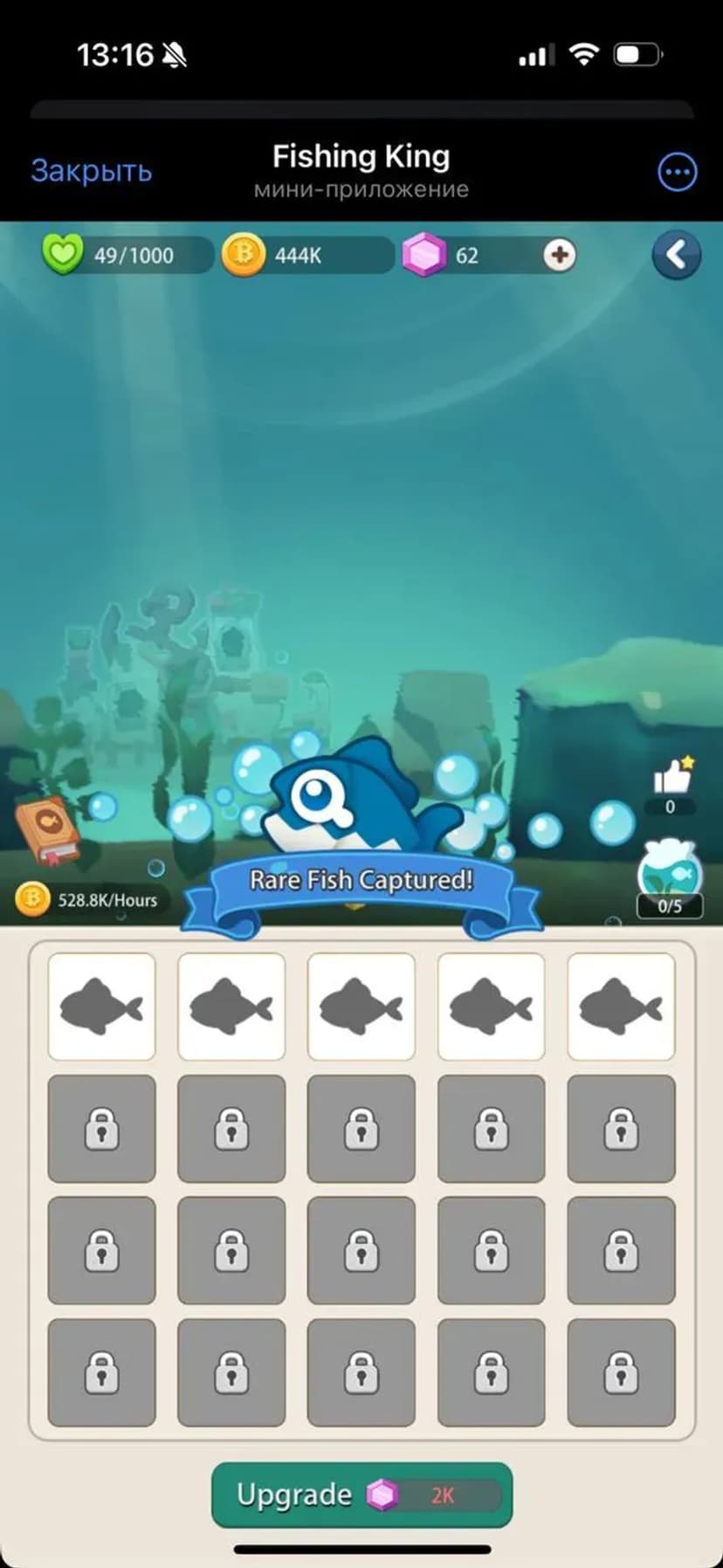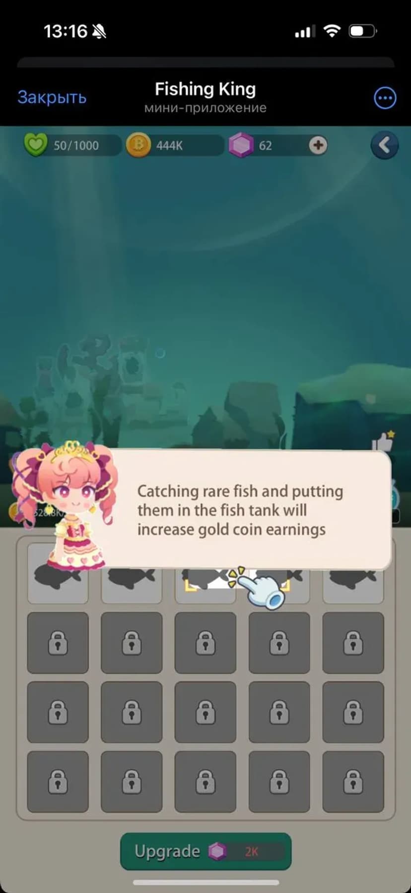 - Прокачка инвентаря: улучшение удочек, лодок и других инструментов;