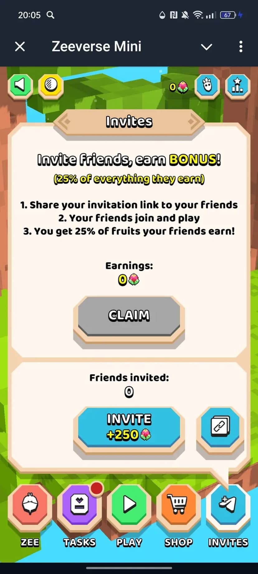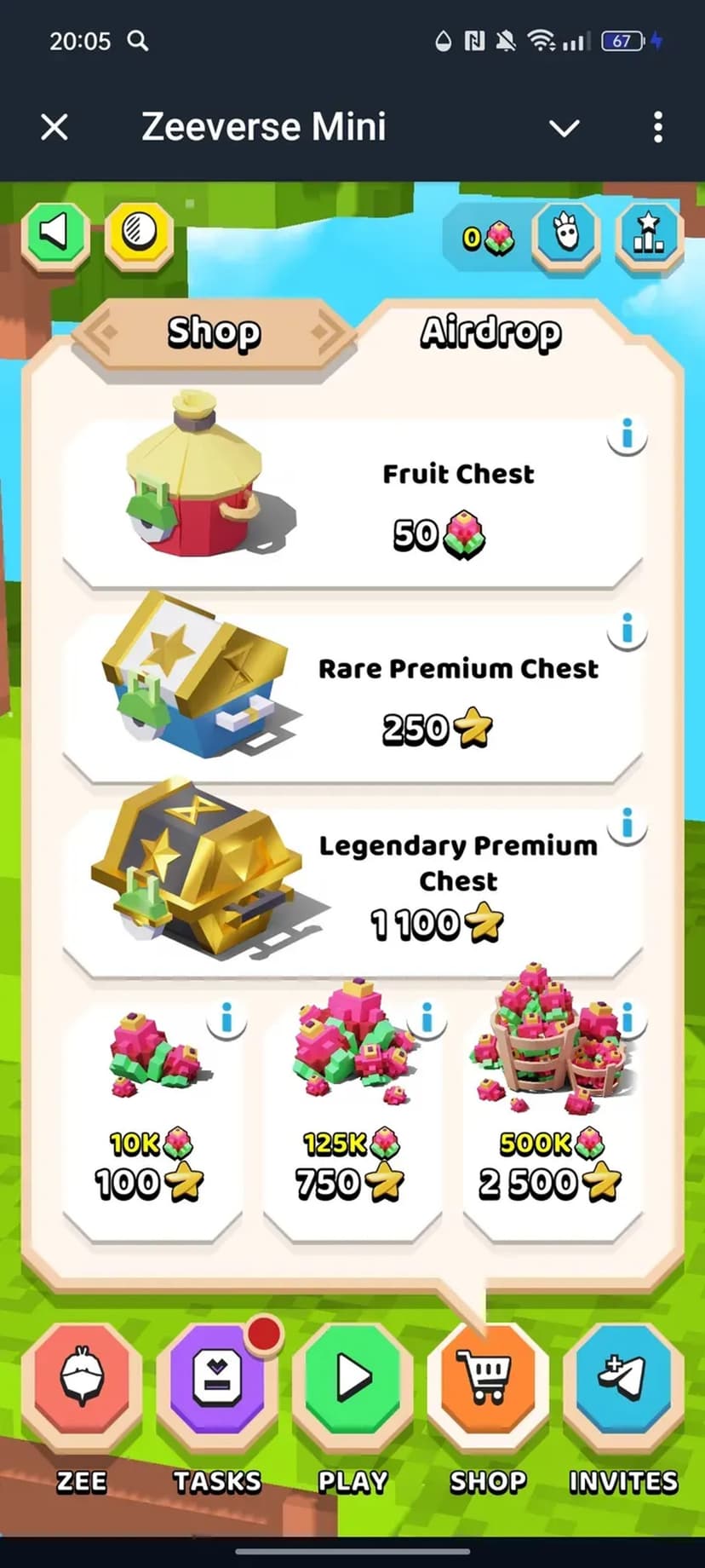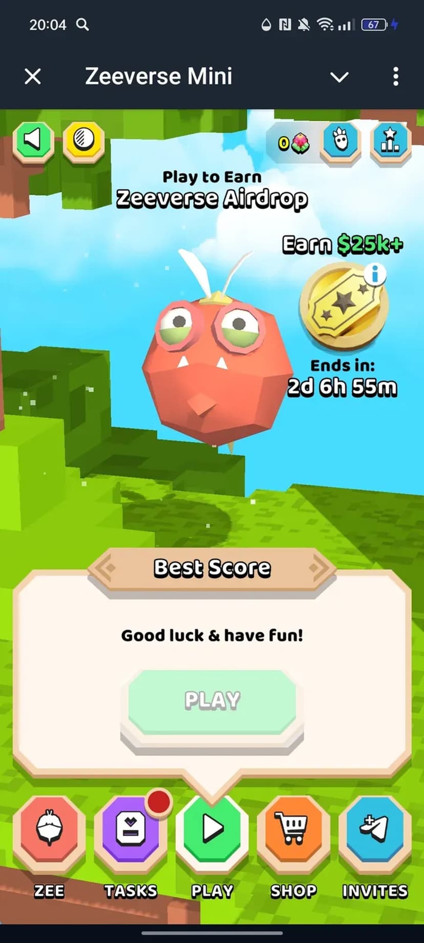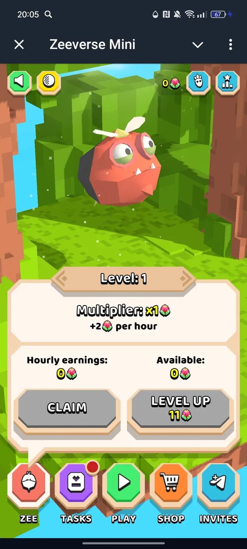 Zeeverse Mini — аркадная игра, где вы управляете персонажем Zoomba, ловите падающие фрукты, набираете очки и проходите уровни. Простая механика сочетается с системой развития героя и внутриигровыми наградами.