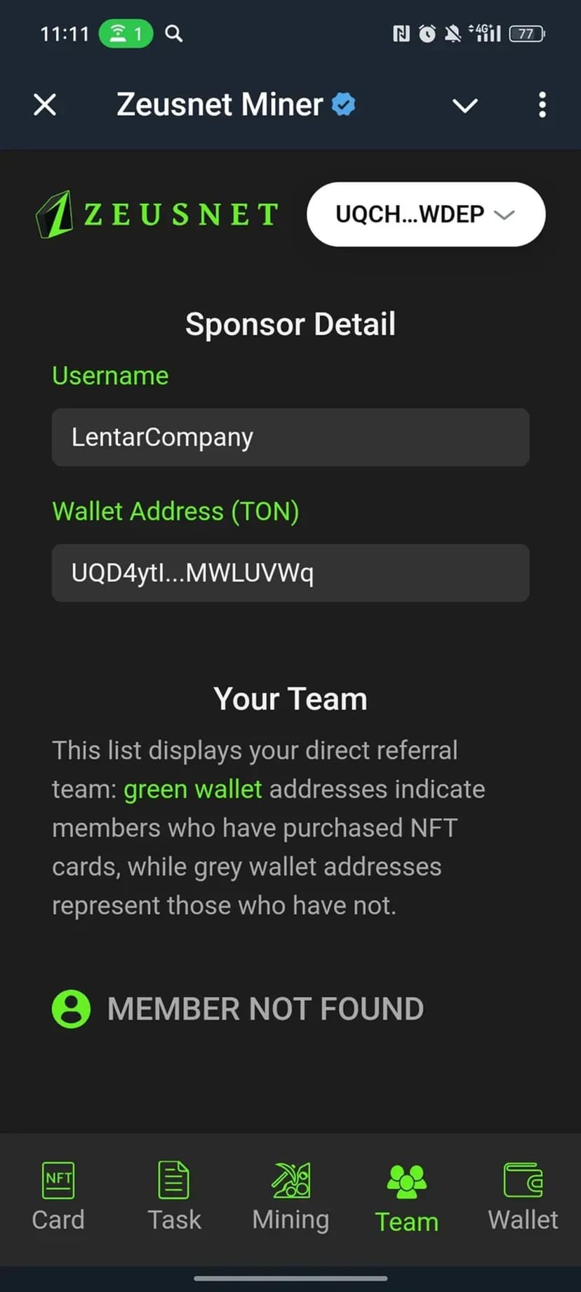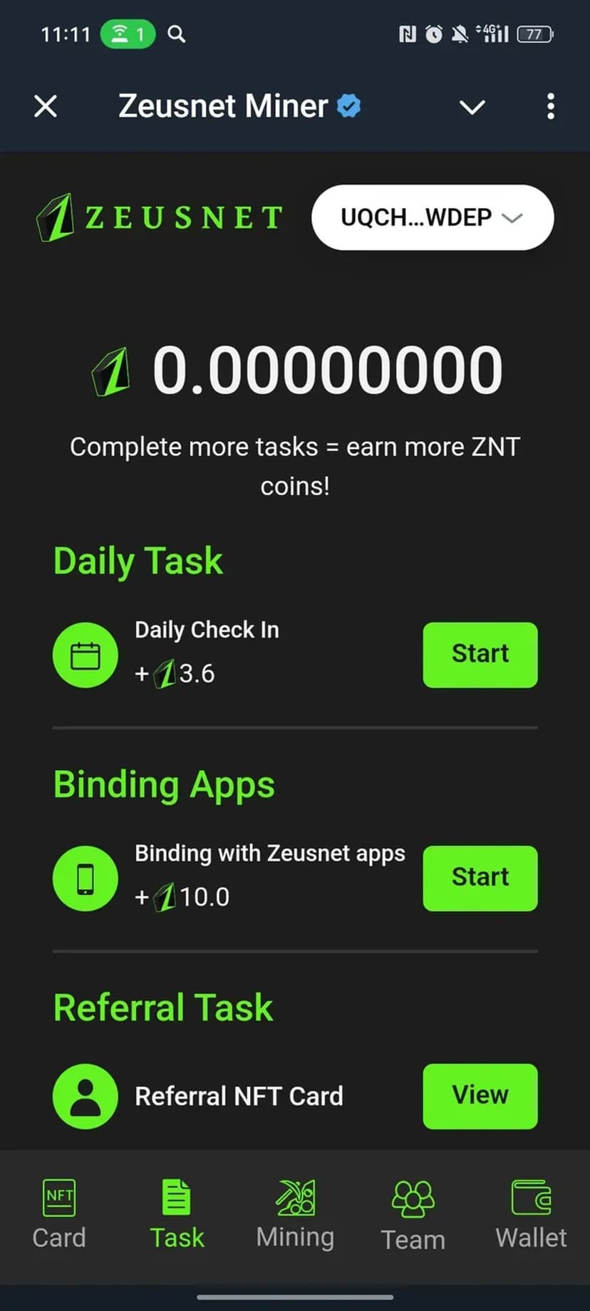 Майнинг $ZNT в Telegram с NFT ZeusCard, заработок $TON и USDT, синхрон с Android