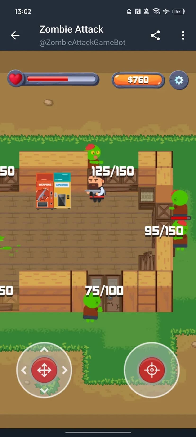 Zombie Attack Game — динамичная мини-игра, где нужно отбиваться от волн зомби, строя защитные сооружения и прокачивая оружие. Управление происходит прямо в чате Telegram, игра не требует регистрации и установки дополнительных приложений.