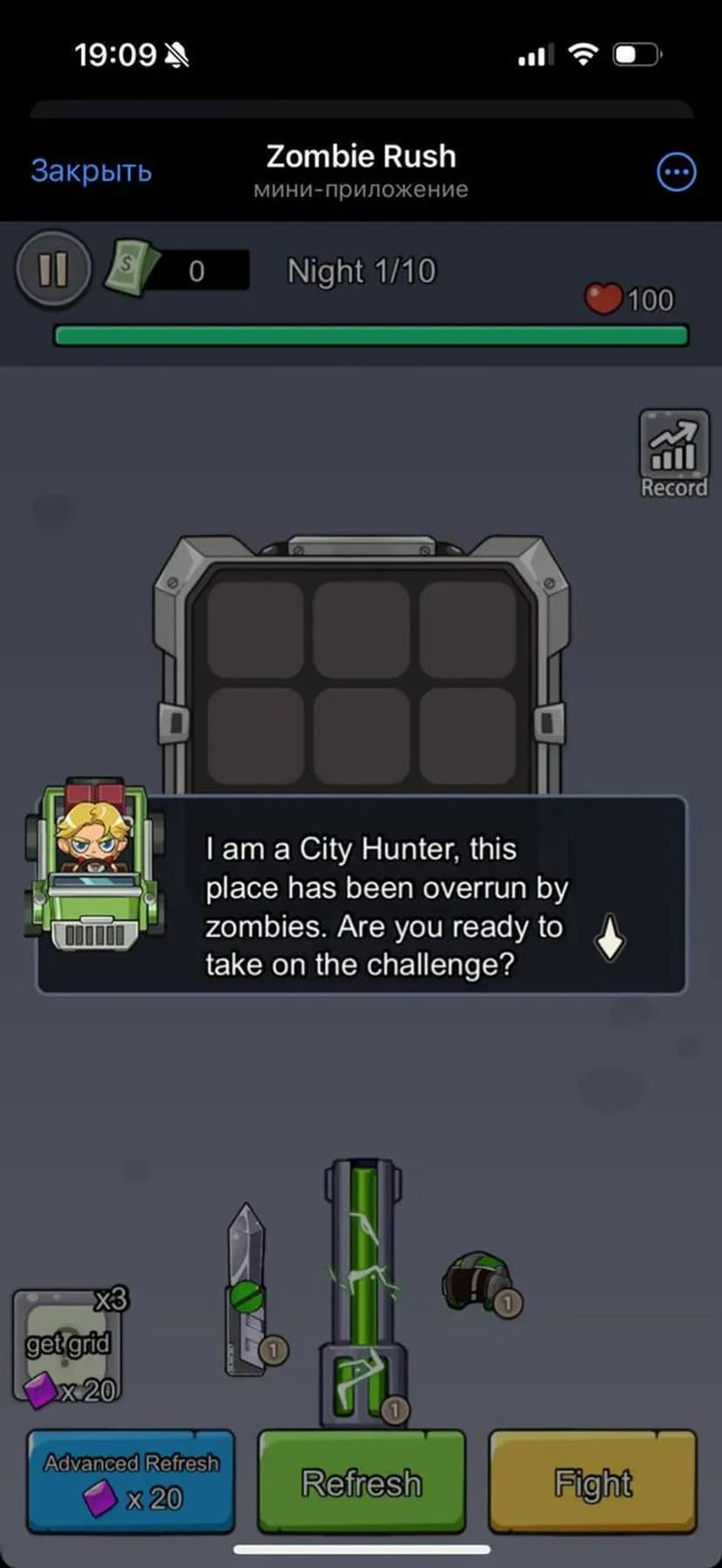 *Нажимая "Открыть в Telegram", вы перейдете к приложению Zombie Rush в мессенджере Telegram